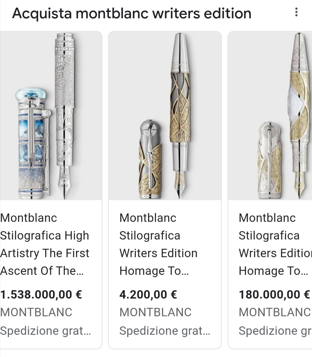 E comunque quando ero al liceo (il secolo scorso) la marca più famosa e prestigiosa era la Parker, non la Montblanc, le mode cambiano.