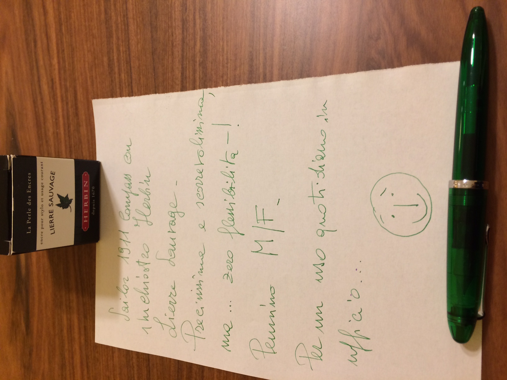 Presa con pennino M/F da un negozio on-line convenzionato e arrivata oggi pomeriggio, provata con inchiostro Herbin Lierre Sauvage.