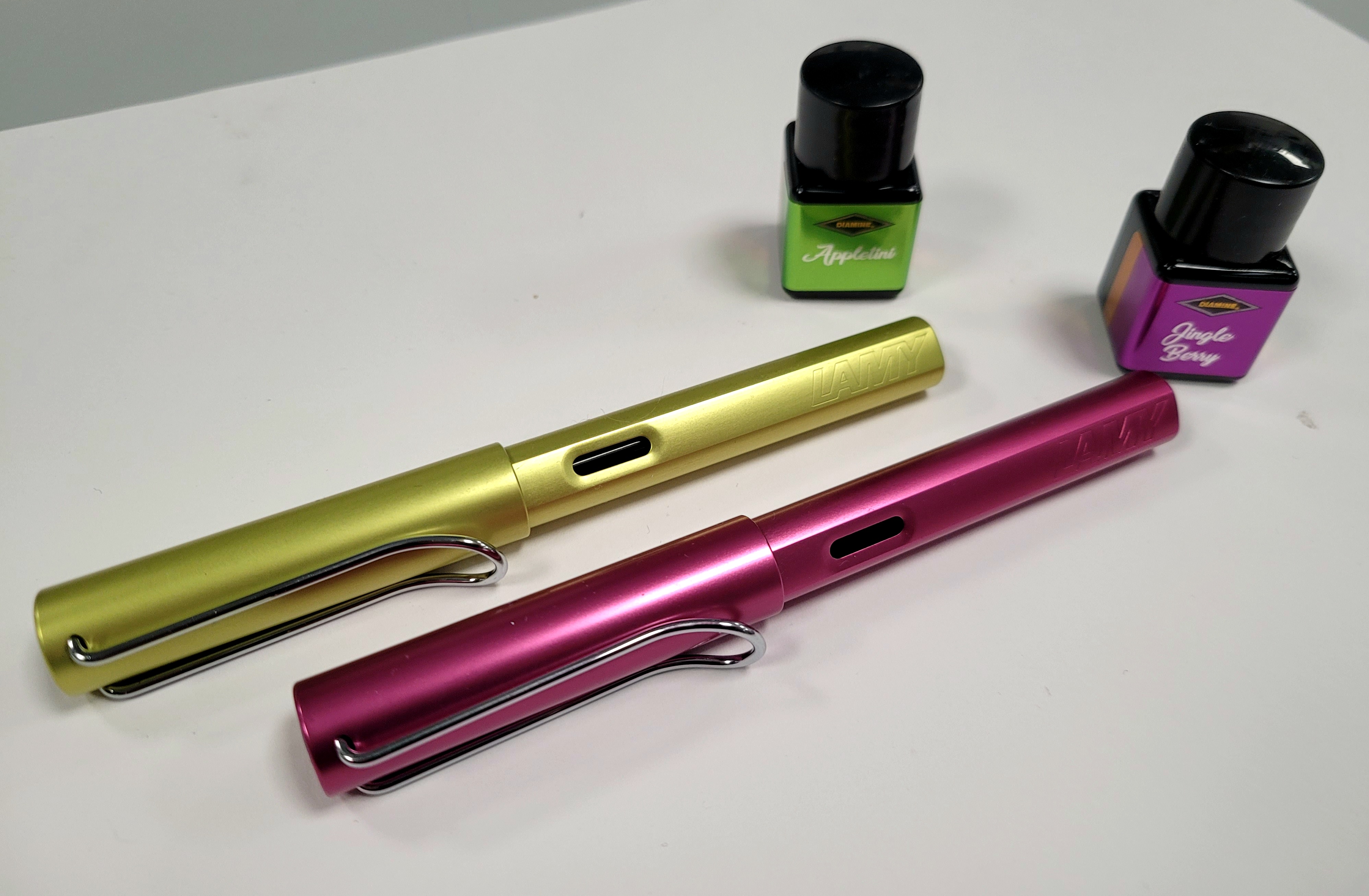 Tra i pochi verdi con cui attualmente sto scrivendo, mi trovo molto bene con il Lamy Peridot della serie T53 Crystal. Si avvicina come tonalità al Diamine Holly, ma senza quel suo bellissimo sheen.