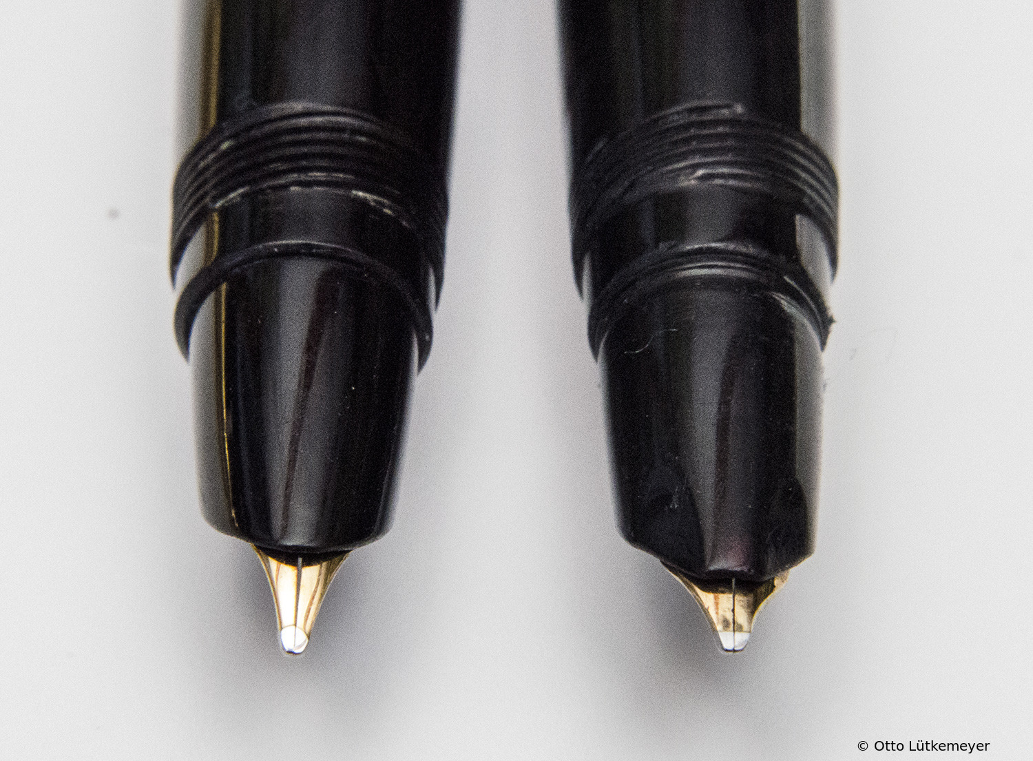 Ecco un confronto con alcune penne coeve: la Parker P51, che ha ispirato il pennino coperto, la successiva Pelikan M20 ed una Montblanc N°22