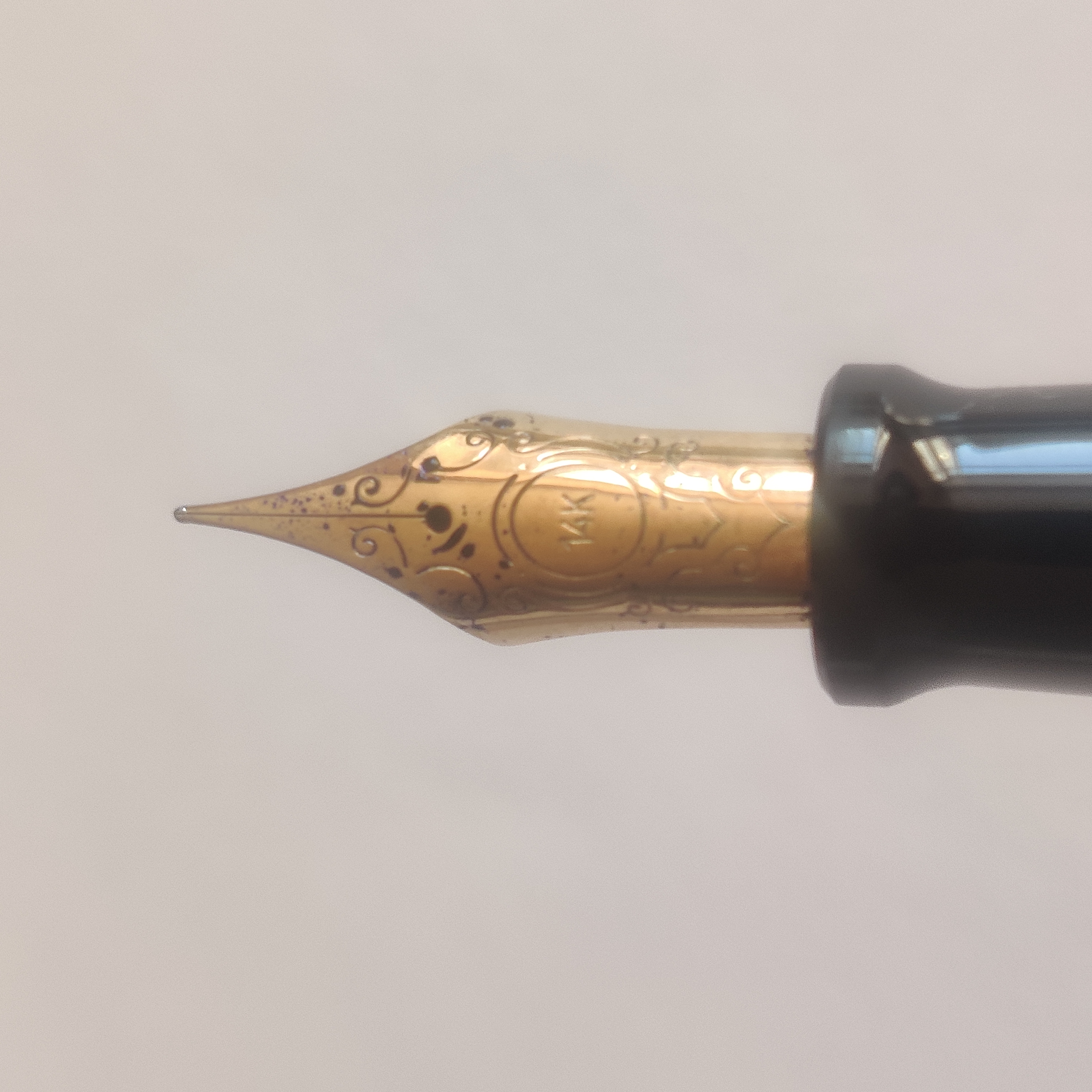 Resta un pochino stitico, o meglio, è schizzinoso quando si parla di inchiostro, ma l’unica differenza che ci trovo rispetto allo stiloforo OMAS è il tratto di base un po’ più grosso: mentre OMAS è un EF vero, il Falcon è un F paragonabile a quello Pelikan. Questa cosa non lo rende proprio “giusto” alla scrittura del corsivo inglese (c’è meno contrasto tra tratti fini e grossi), ma non ho il coraggio di provare a ridurre il tratto con la micromesh