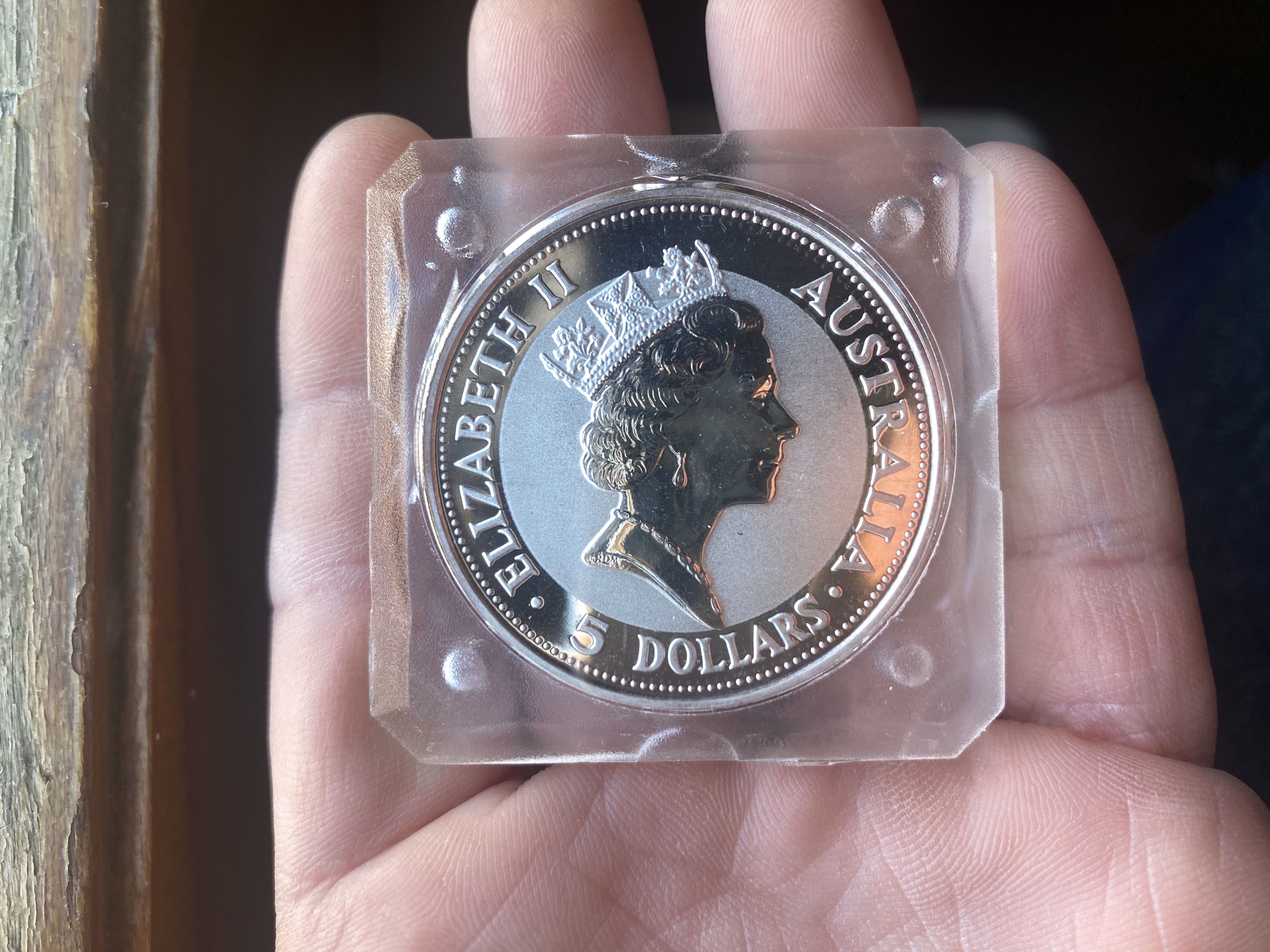 Quella è l'ultima versione a 5 dollari nominali, dal 1992 il valore nominale fu di 1 dollaro. Al massimo una quarantina di euro (più probabilmente 30) se intatta e a fior di conio.