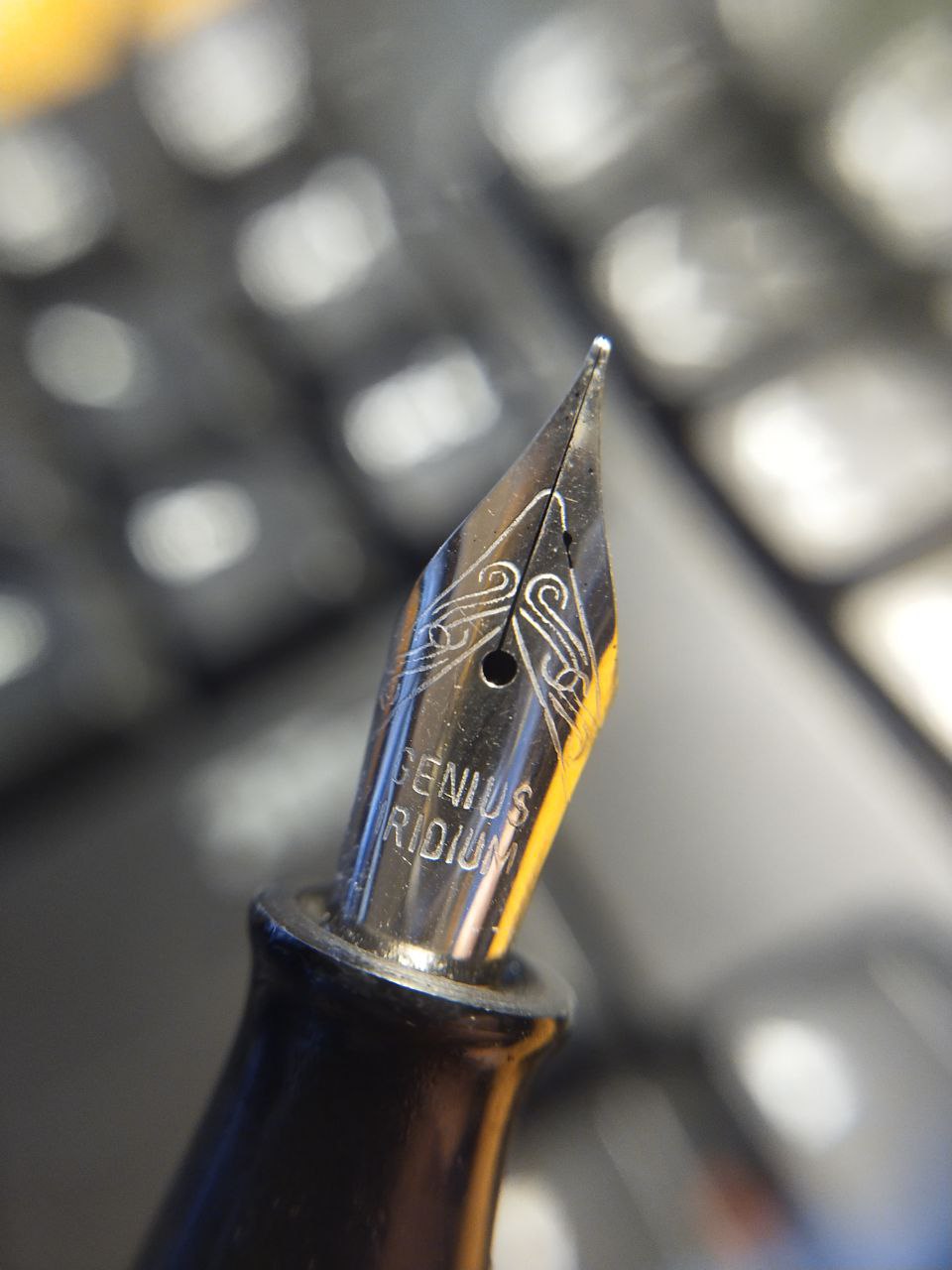 Provo a chiedere un consiglio: questa vecchia penna anonima scrive bene, ma il pennino è un po' fine per i miei gusti. Ci sarebbe modo di capire che misura dovrei cercare per sostituirlo con qualcosa di altrettanto economico, ma meno fine?