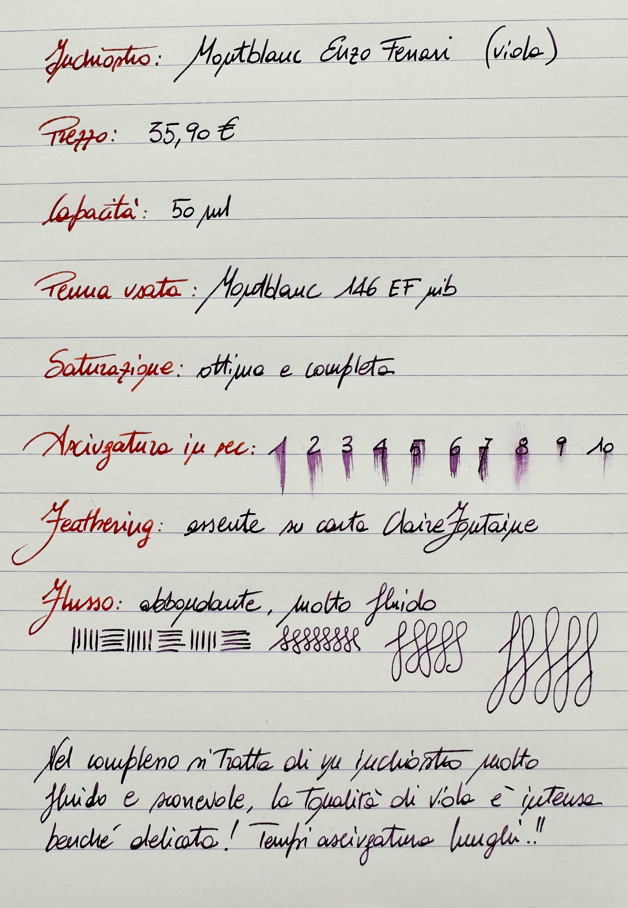 come promesso ecco la prova dell'inchiostro Montblanc Great Character Enzo Ferrari purple.