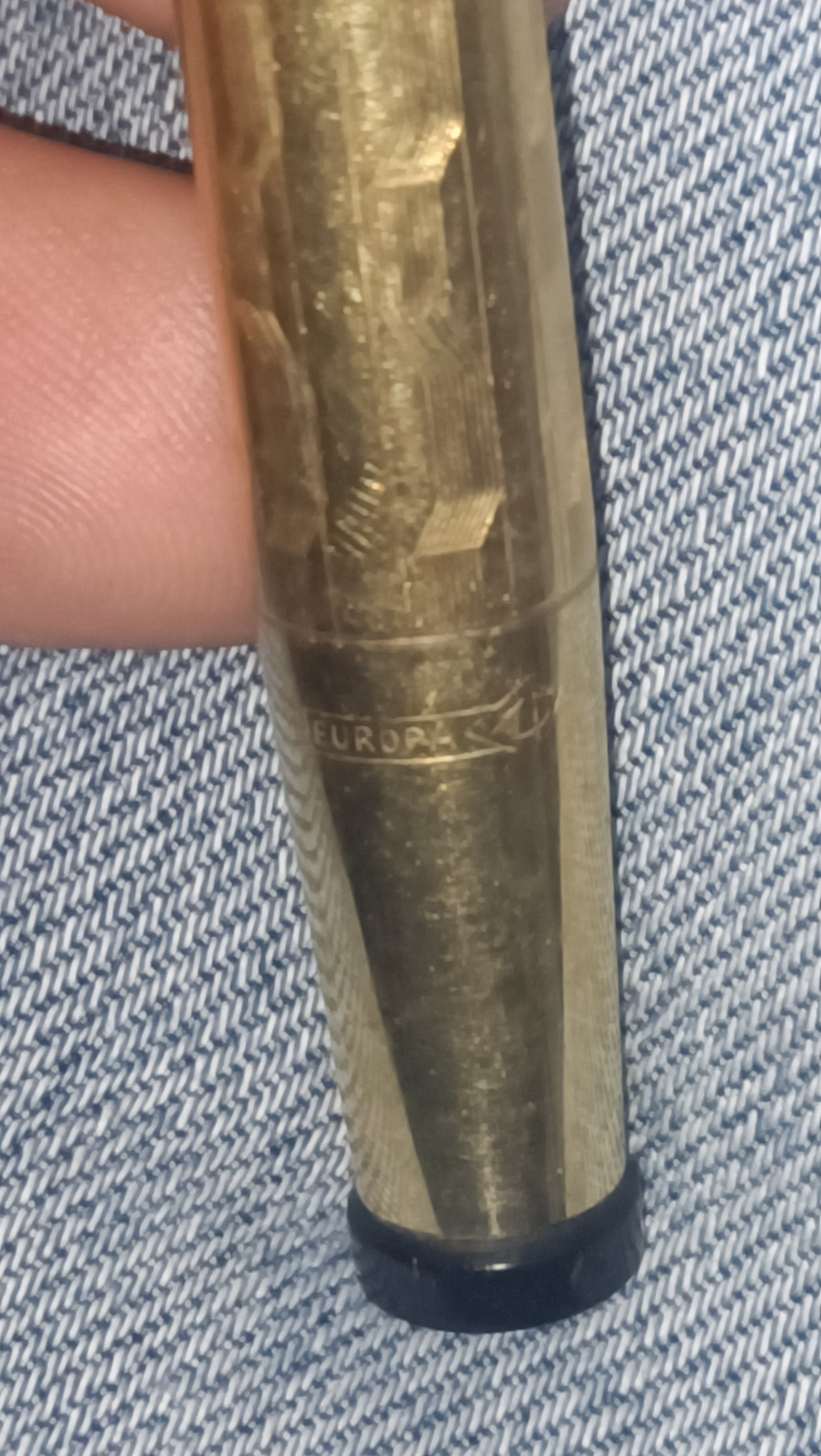 La penna fu rivestita da una delle migliori artigiane del laboratorio, Linda Darnes, moglie di Giuseppe Cavaliere, fondatore della ditta, la quale vi ha apposto il suo marchio personale, evidenziato nell'ultima foto...