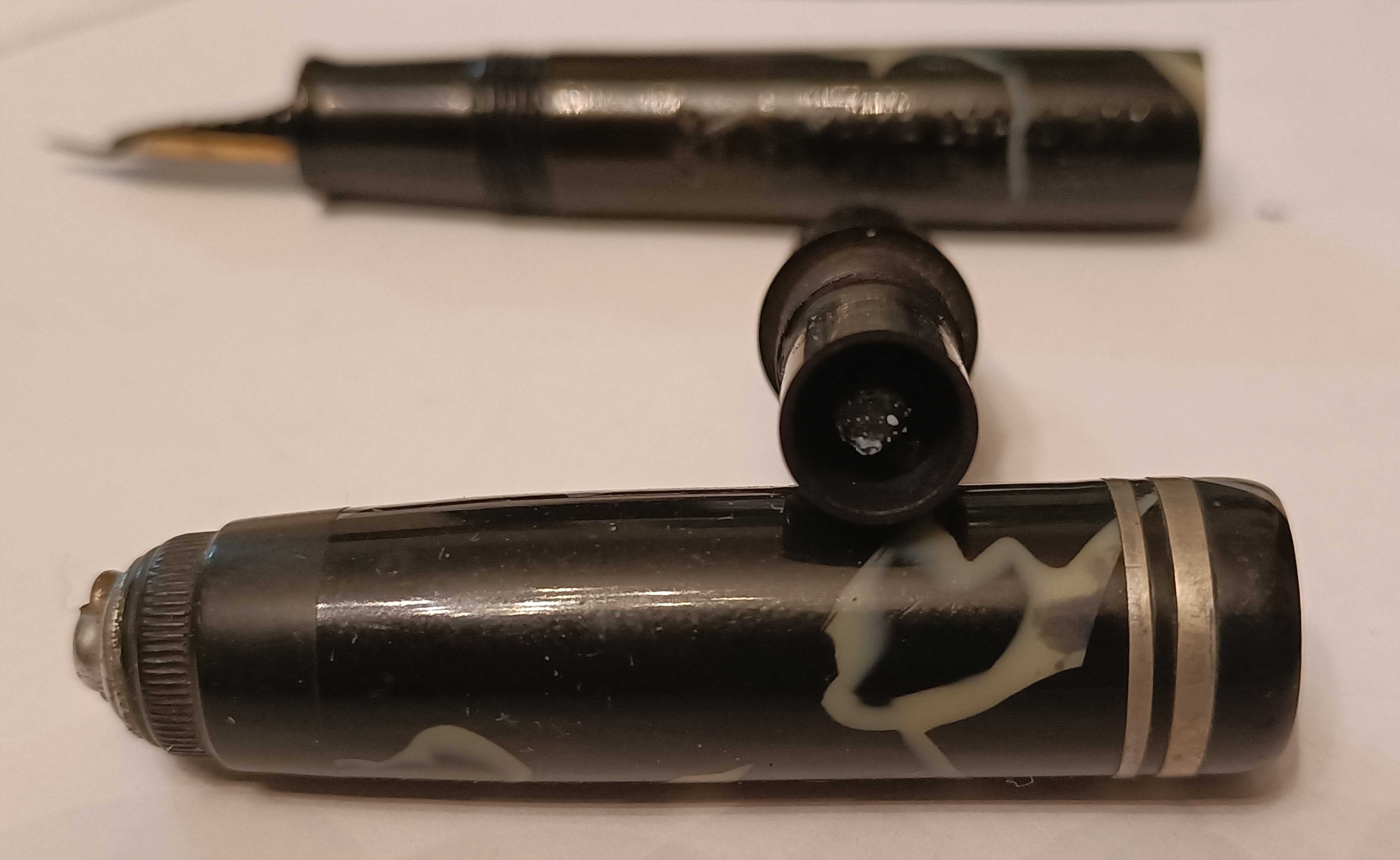 L'unica cosa che riesco ad immaginare è che il pernio fosse incollato ad un tubo di gomma in un qualche meccanismo di riempimento a torsione, ma in realtà non avendone mai visto uno non saprei quanto questa ipotesi sia verosimile. Inoltre la Wiki non fa cenno di un simile sistema, piuttosto raro, in connessione con la marca.