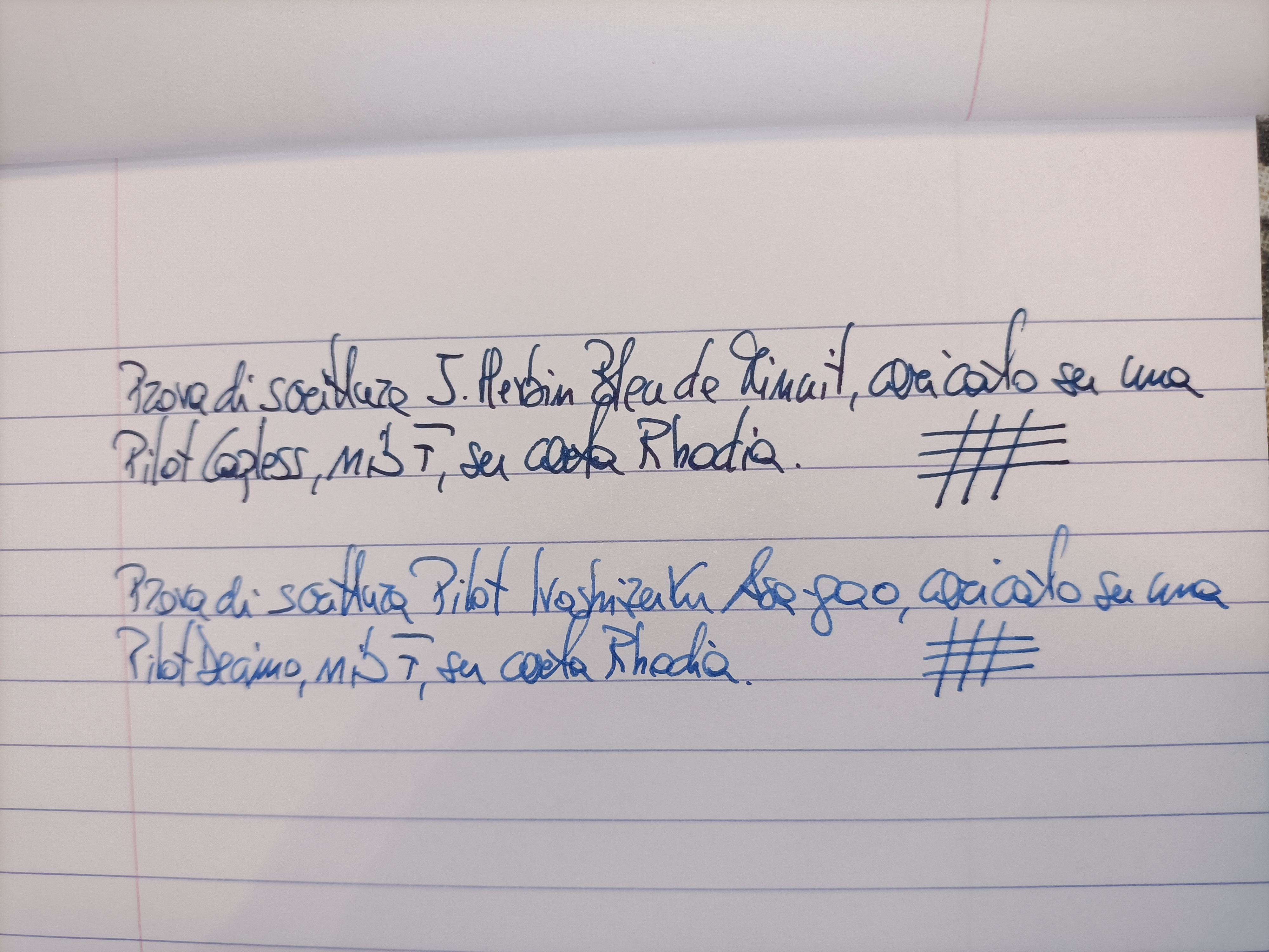 Ho la Capless caricata col BdM ma ho anche con me Asa-Gao in cartuccia. Appena ho due minuti, faccio una prova di scrittura col BdM, scarico la penna e la carico col Asa-Gao e provo a fare una comparazione
