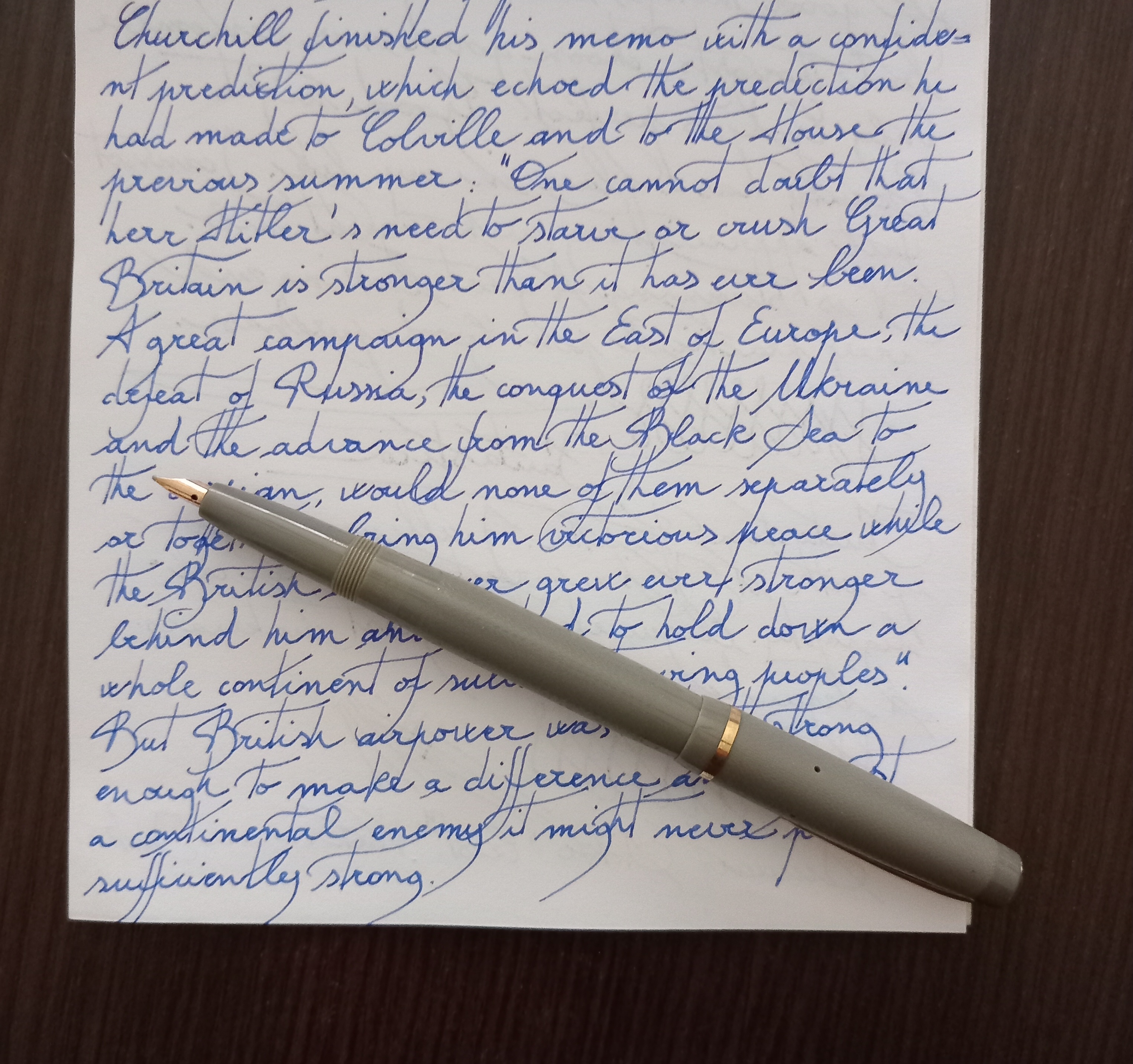 Estratto da "The last Lion, W. S. Churchill, defender of the realm 1940 - 1965". Summit S. 170 "Crest", Waterman Serenity Blue, carta Pigna Style.