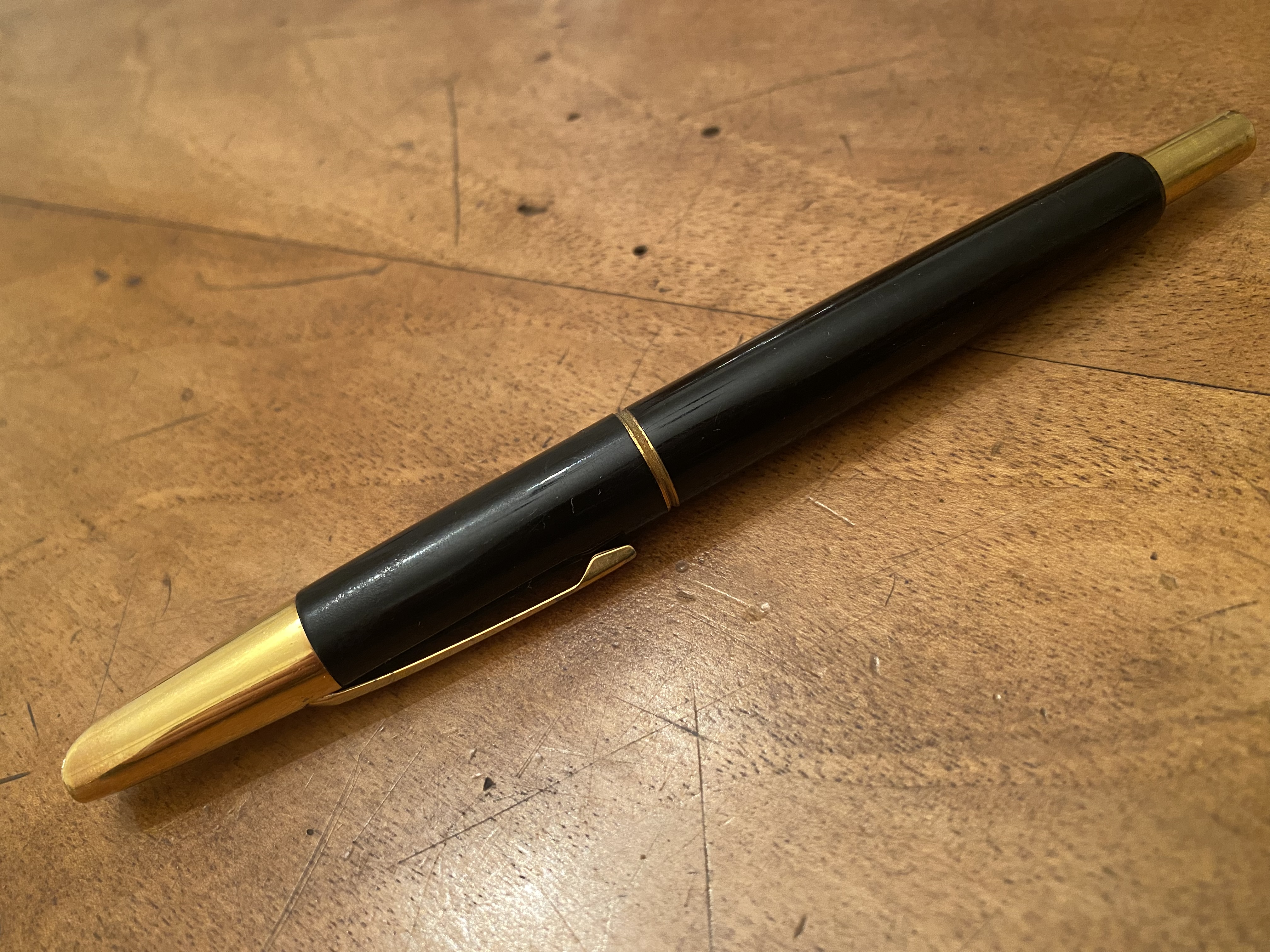 Questo modello, nero con dettagli dorati, è del gennaio ‘965 come riporta inciso il pennino in oro 14kt di misura fine (se non ho capito male erano tutti fini)…