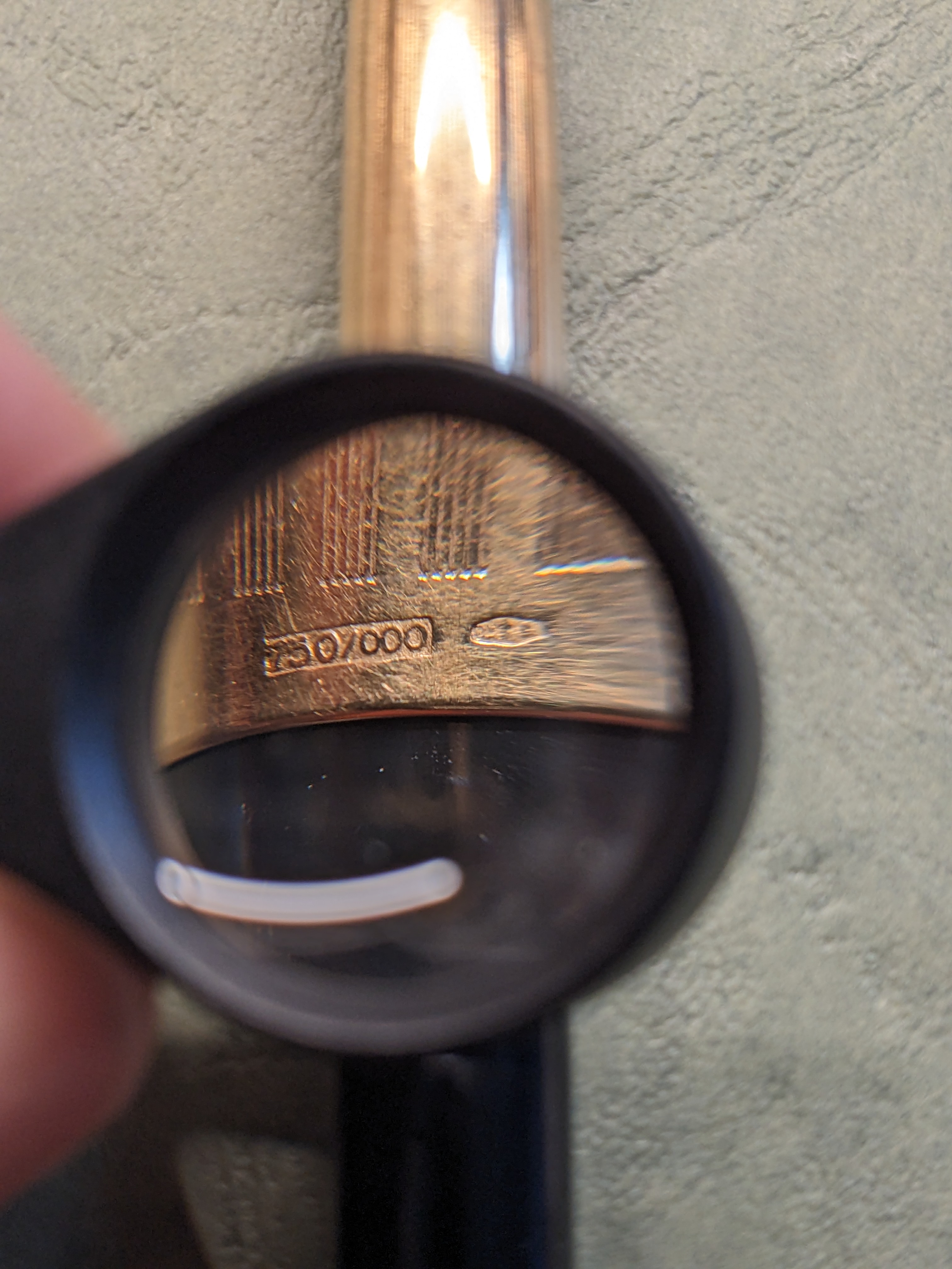 Per l'incisione sul bordo potrebbe essere un cappuccio in oro? (massiccio?)