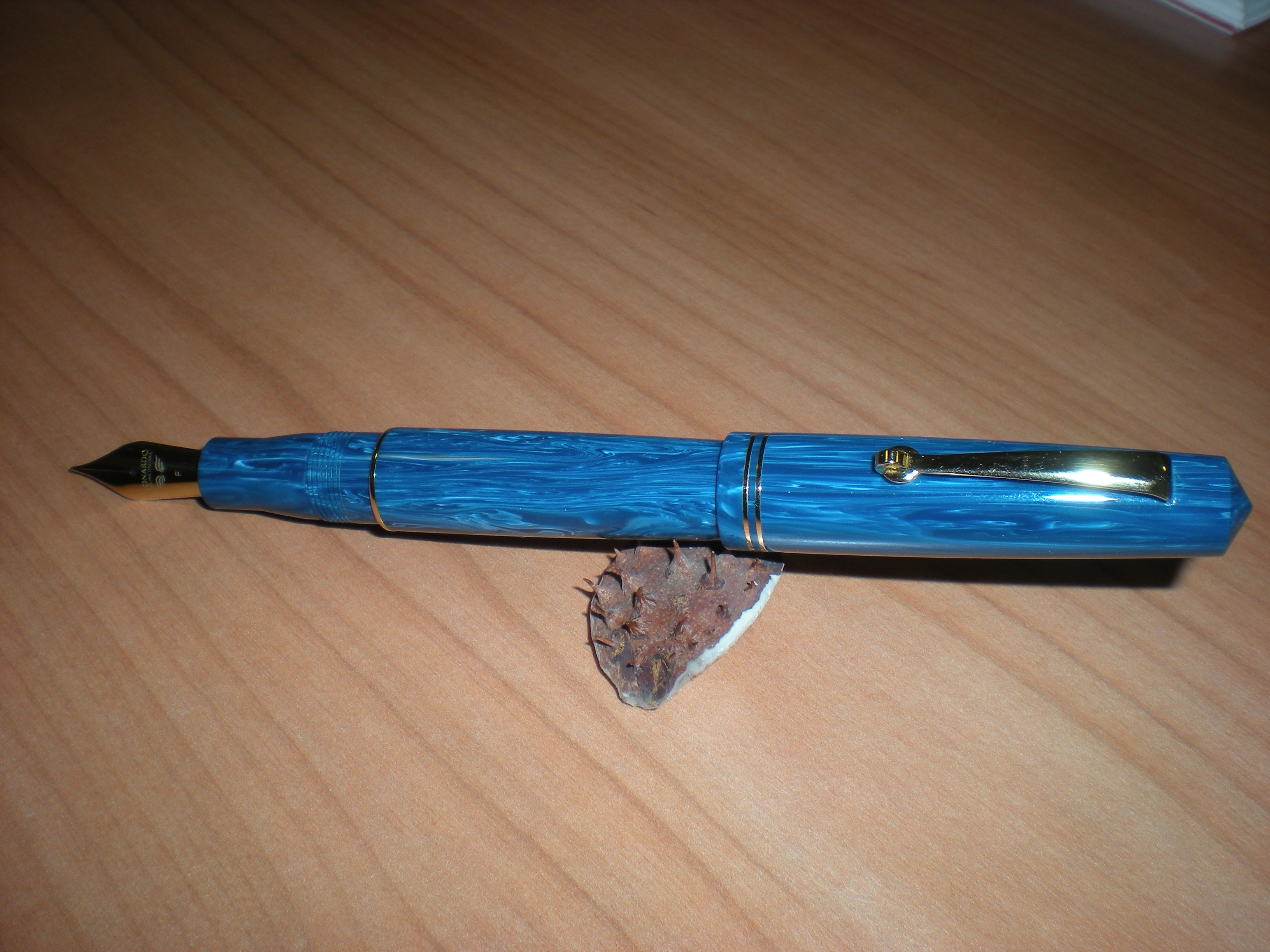 Oltre la Furore Grande Positano ho un'altra penna prodotta da Leonardo (per Tom Westerich) che usa la stessa resina, e anche lei tende all'azzurro.
