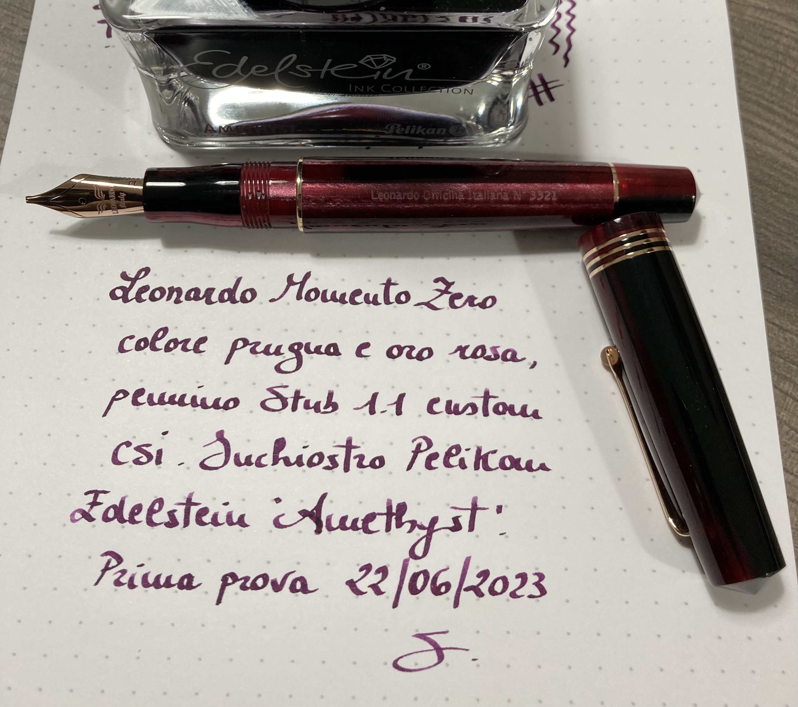 Leonardo MZ prugna e oro rosa, pennino stub 1.1 customizzato in stile “quasi CSI” dal precedente possessore