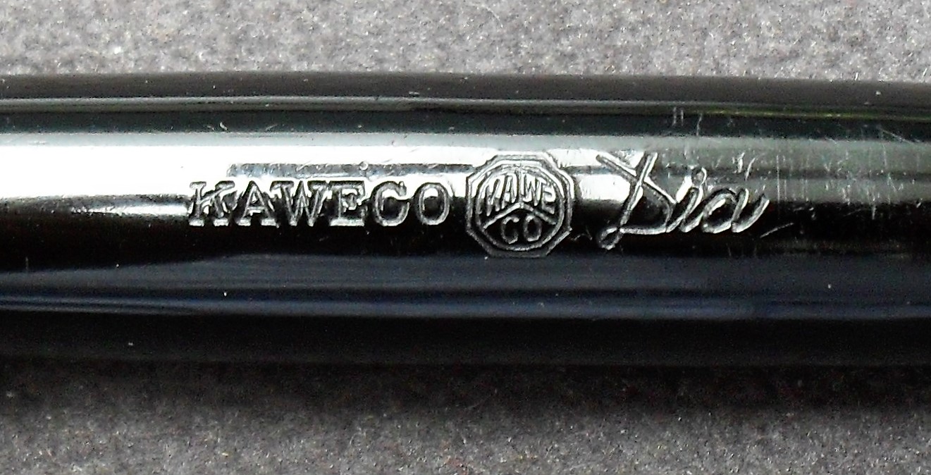 Il logo del produttore, a differenza della versione che caratterizza le Kaweco moderne, è inscritto in un ottagono ed è riportato sul castone della corona del cappuccio e sul fusto: