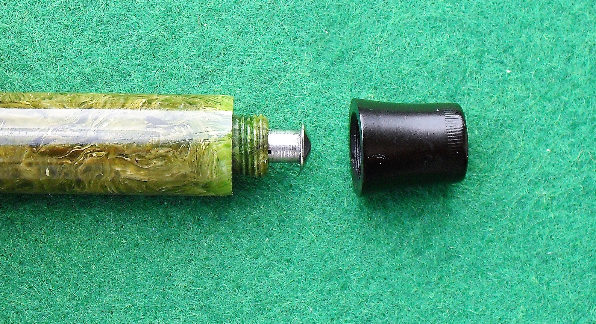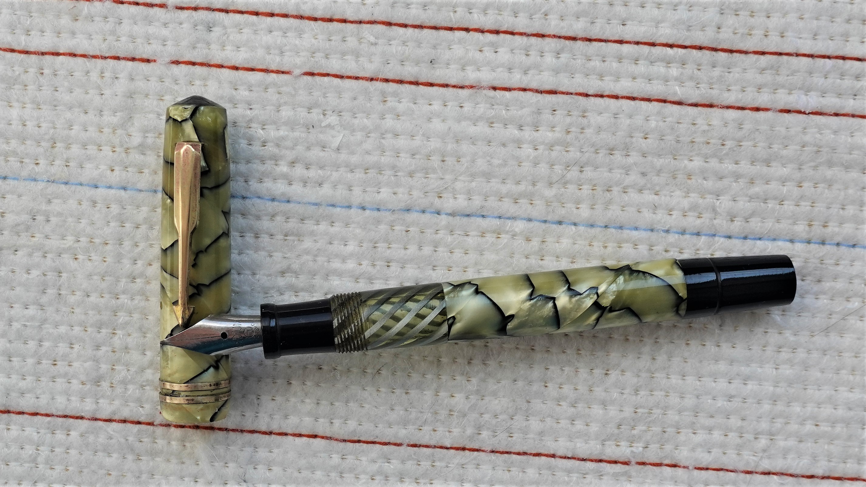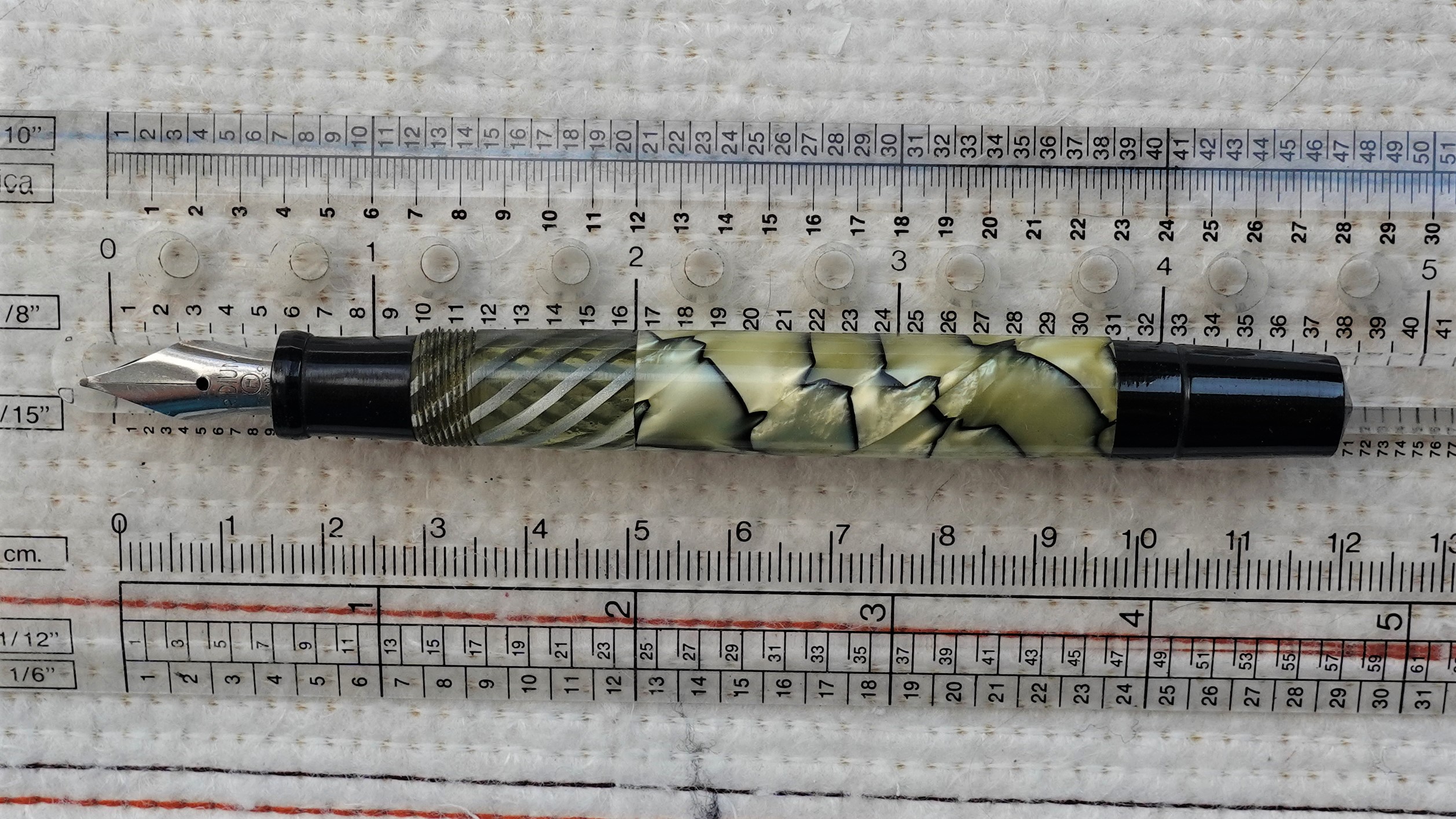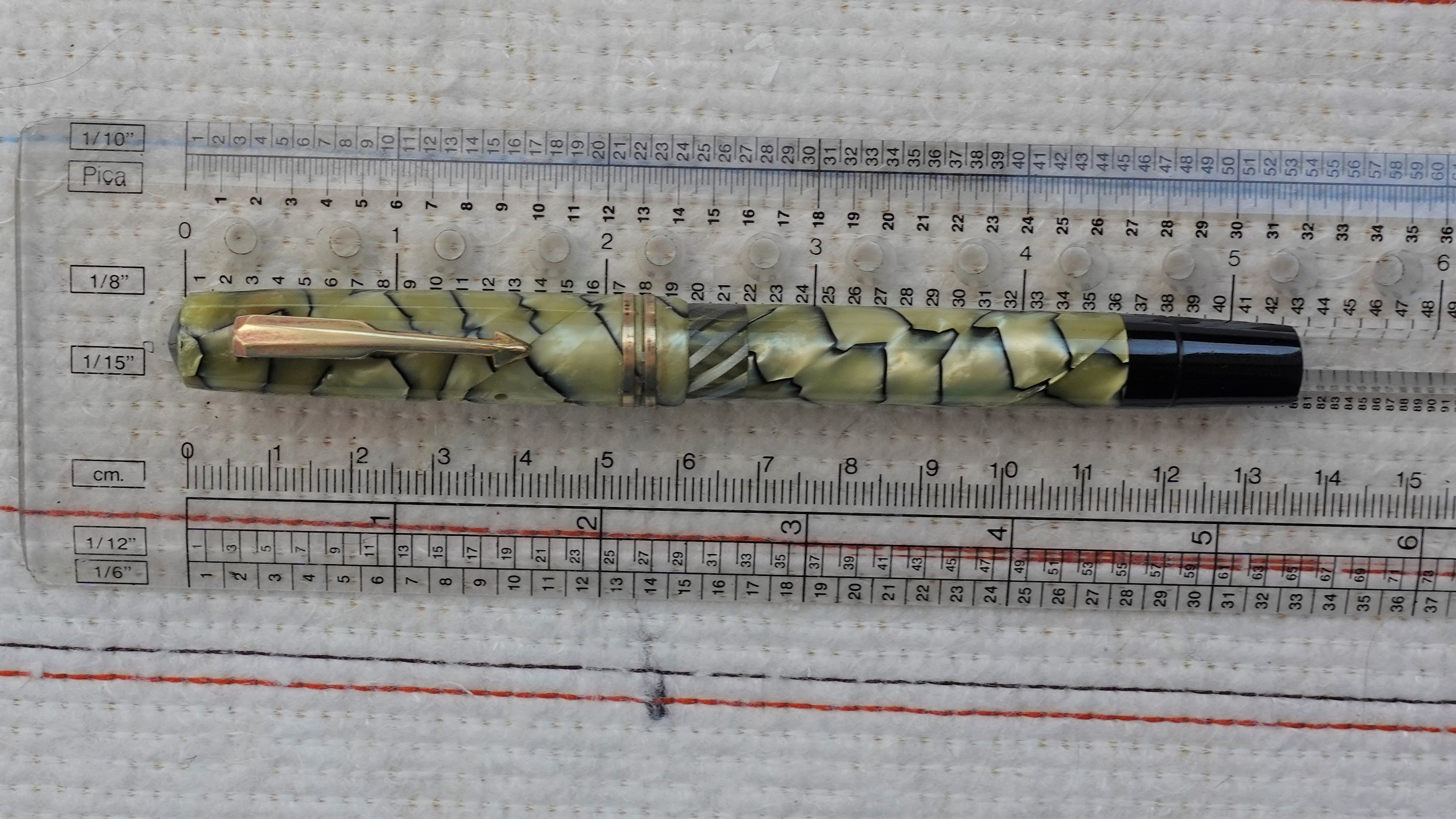 Molto molto bella la celluloide; ho solo qualche perplessità per il fondello di colore nero così lungo : più corto sarebbe stato esteticamente più grazioso, ma son gusti personali (sto cercando qualche scusa del tipo "la volpe e l'uva"...