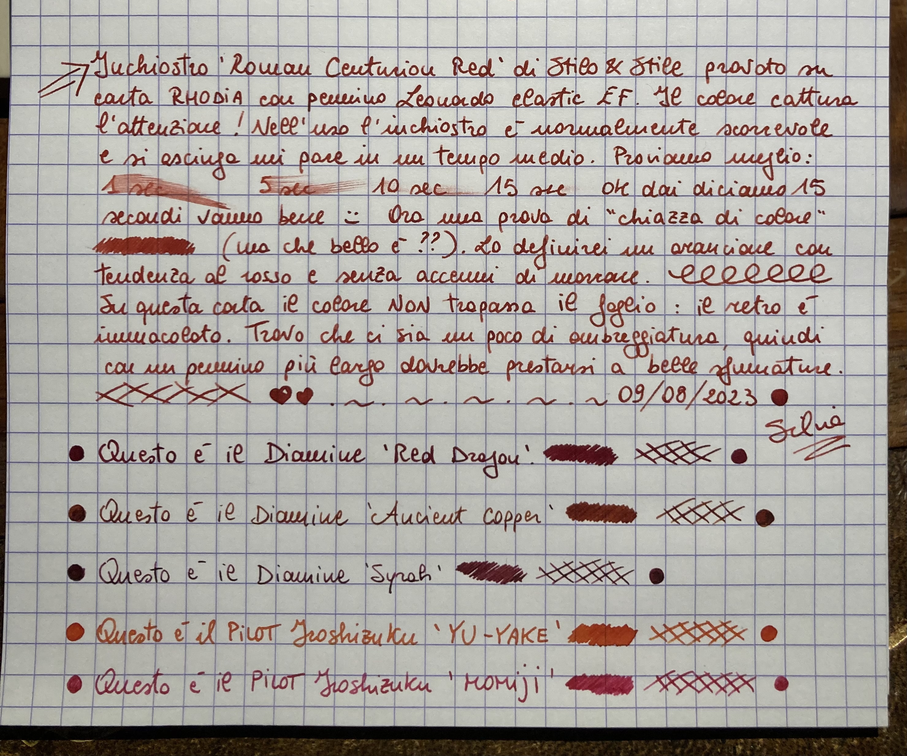 Che ne pensate? A me è piaciuto molto questo Roman Centurion Red, sarà perché mi ricorda certe stoffe tinte, sarà perché non è un rosso scolastico, sarà per lo shading che promette bene.. A voi i commenti e spero le vostre esperienze con lo stesso inchiostro