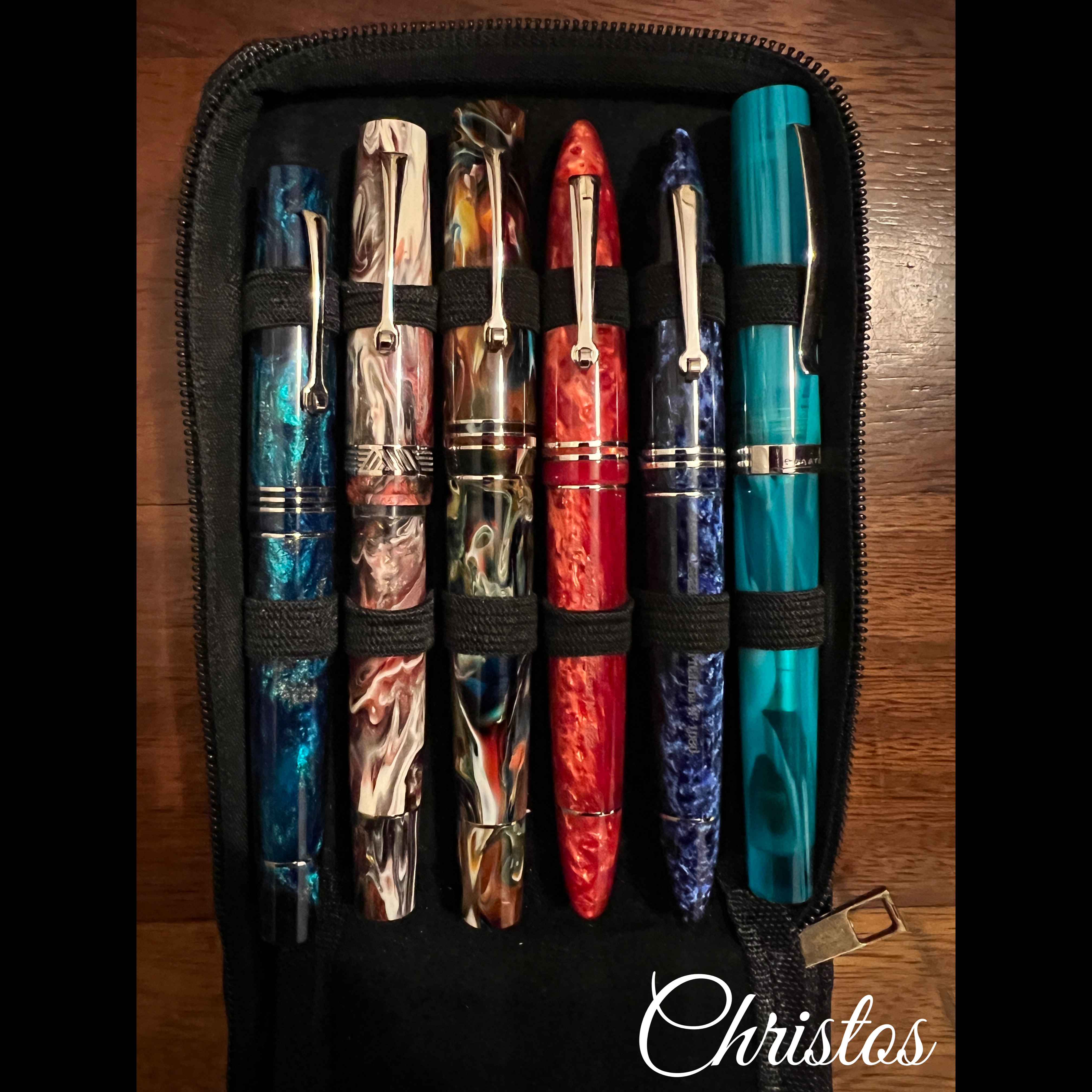 da sinistra : vecchio portasigari marca Lubinski riciclato; portapenne da sei posti in pelle marca boh (nel senso che non la sò); Saki rollo da tre posti e ultimo lo Staedtler in pelle da due posti.IMG_20230814_185739.jpg