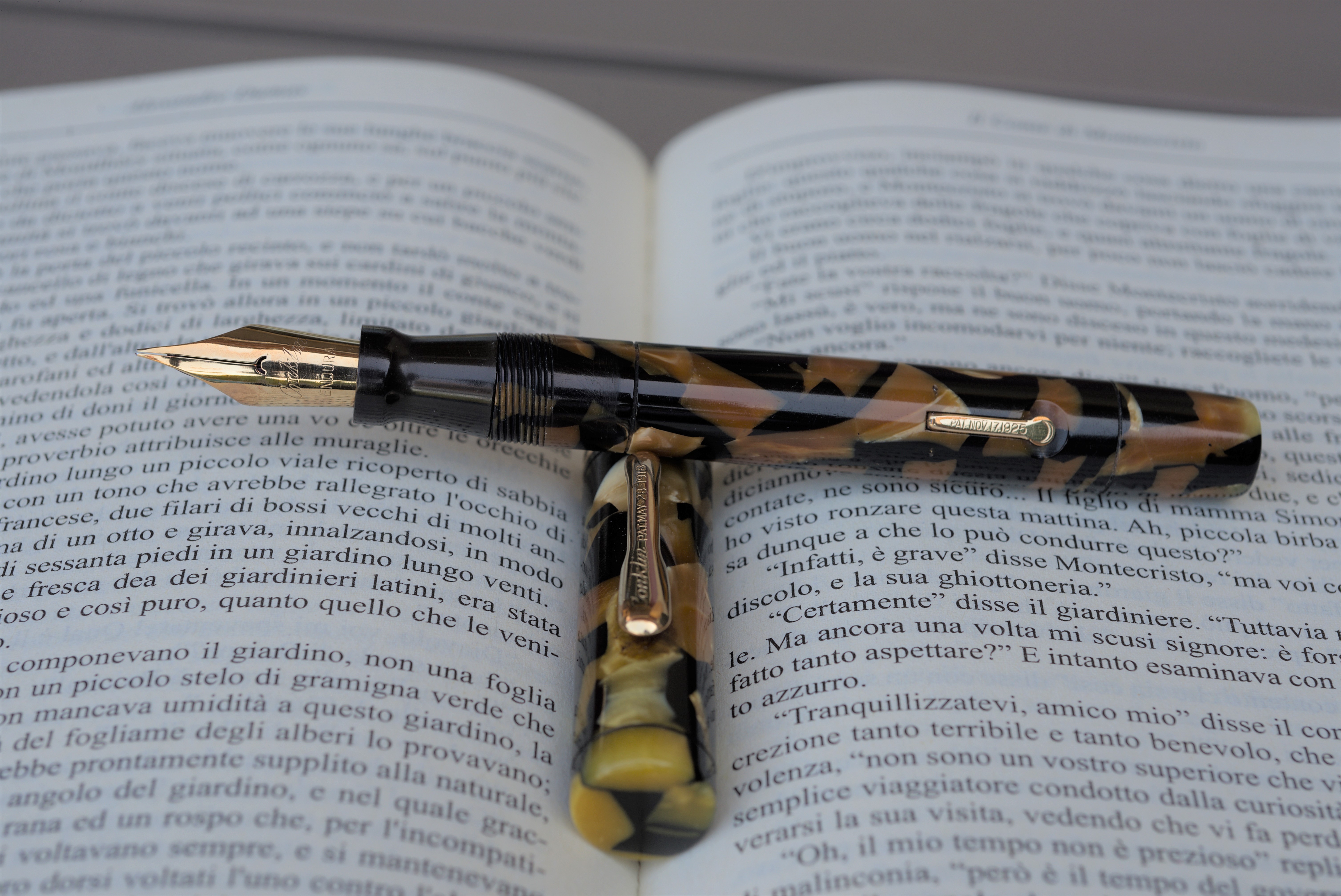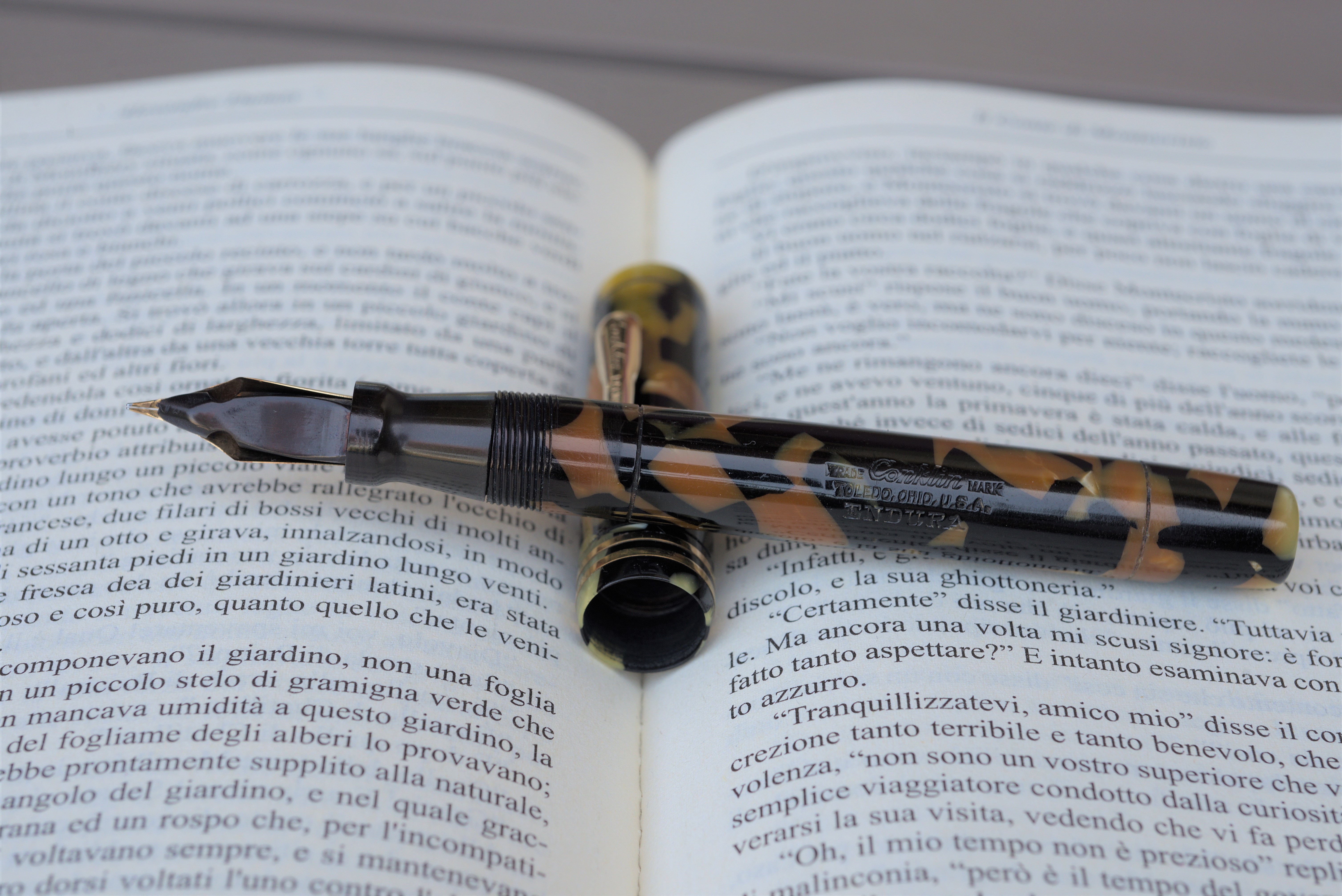 Continuando nella presentazione delle mie penne con pennino flessibile, ecco una Conklin Endura Senior in celluloide Black & Pearl.