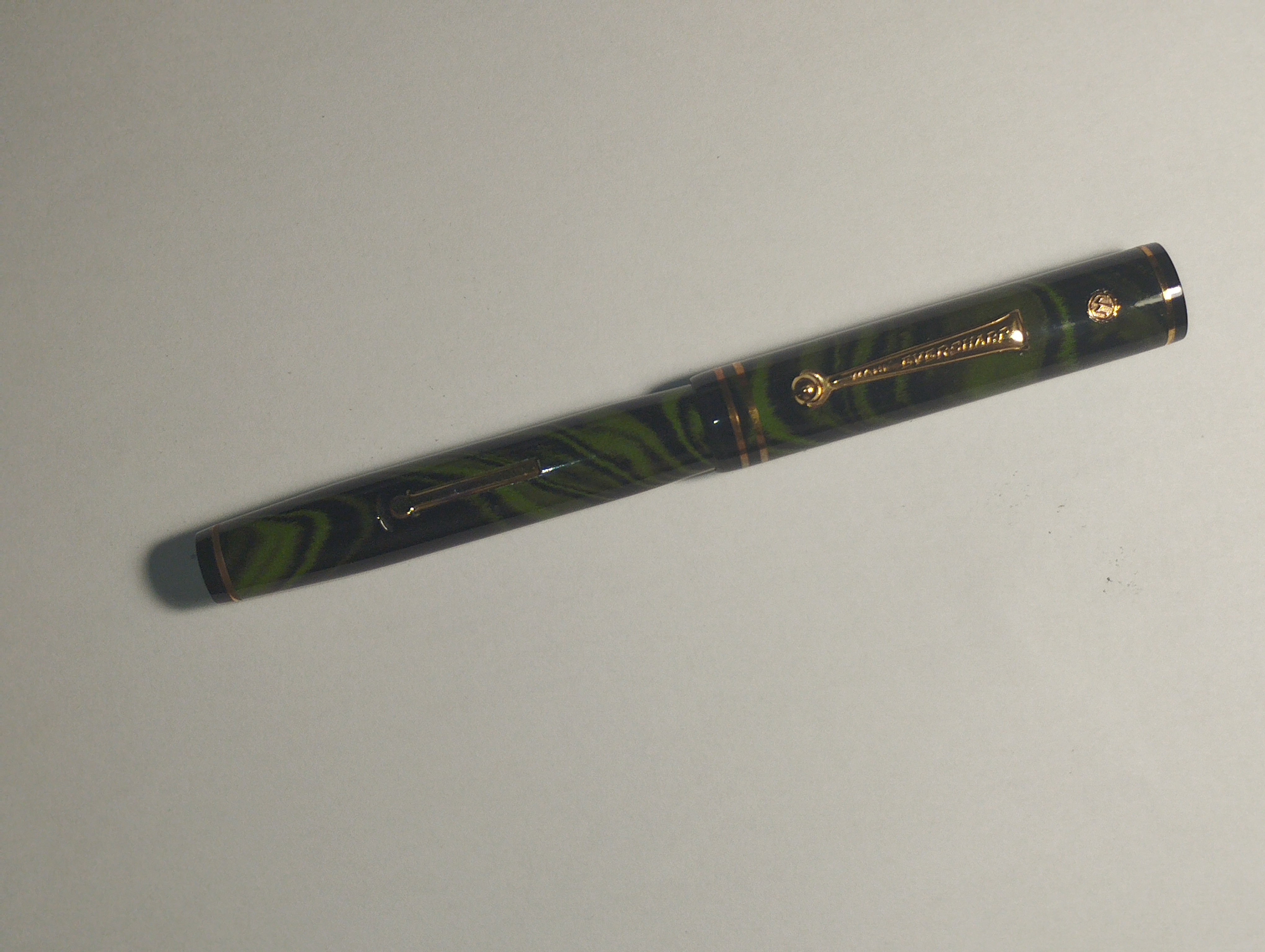 Assumendo che questa penna non sia una prima versione e che quindi sia già in uso il Personal-Point , e che la crisi economica del ’29 (appena cominciata) spinga le aziende ad utilizzare anche i fondi di magazzino disponibili , come le vecchie clip, assumendo tutto questo, non torna con il periodo storico il tipo di pennino . La sola incisione EVERSHARP ad arco e senza la dicitura WAHL , è assai più tarda e databile intorno al 1935 circa (equipaggiava le Doric di seconda generazione). Poco male, un pennino si può facilmente danneggiare ed altrettanto facilmente sostituire (come probabilmente accaduto nei casi qui sotto, nei quali il pennino è più tardo rispetto al periodo di produzione della penna).
