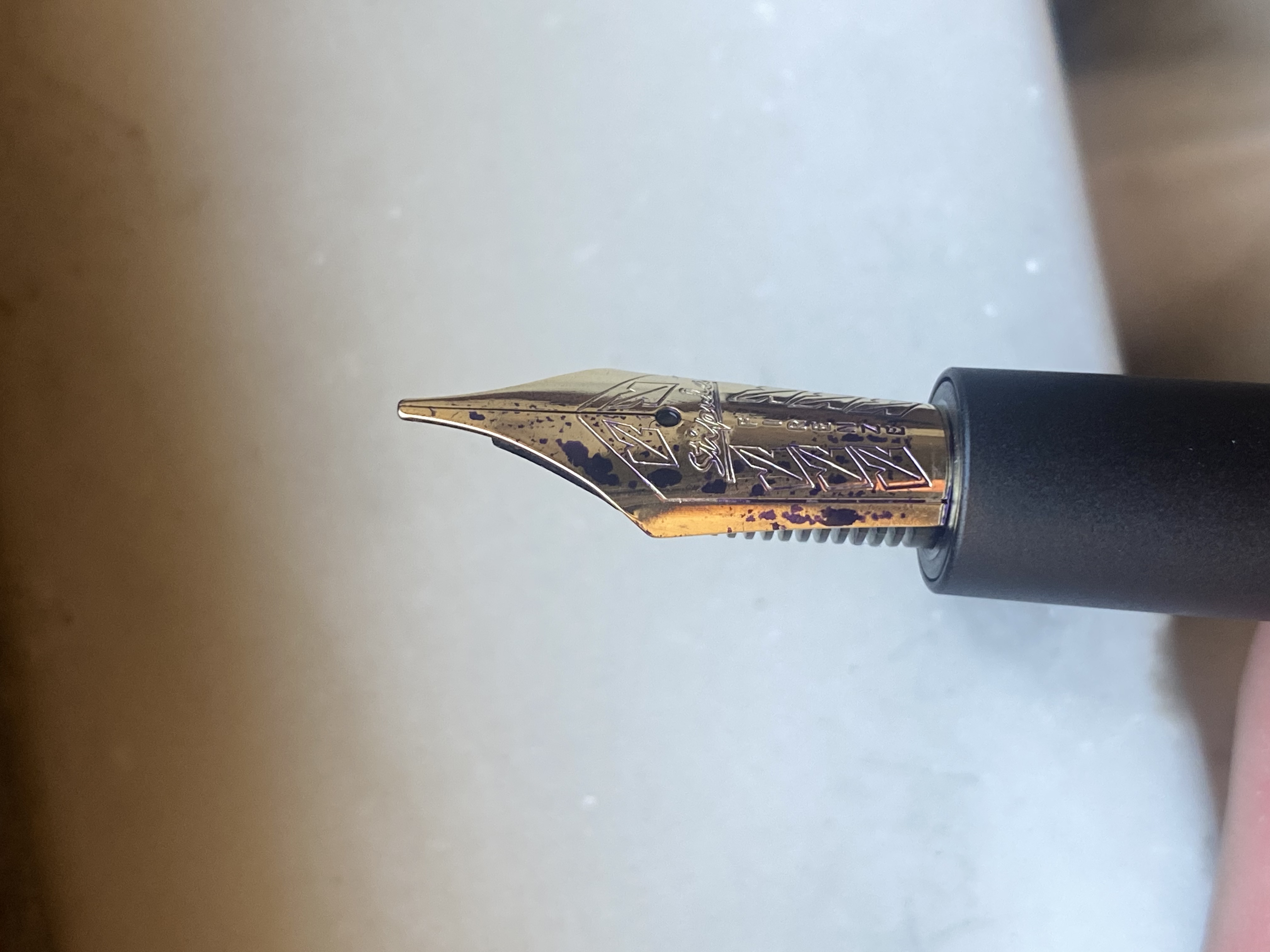 Poi improvvisamente pare (non ho matematica certezza, il sito Bock non li cita, ma potrebbe non essere autorizzato a farlo), sia passata a Jowo (almeno su quelli in acciaio, forse anche quelli in oro). Purtroppo non è semplice riconoscere l'origine del pennino perché Stipula ha sempre usato degli alimentatori "proprietari" ossia non Bock né Jowo, probabilmente di produzione cinese.