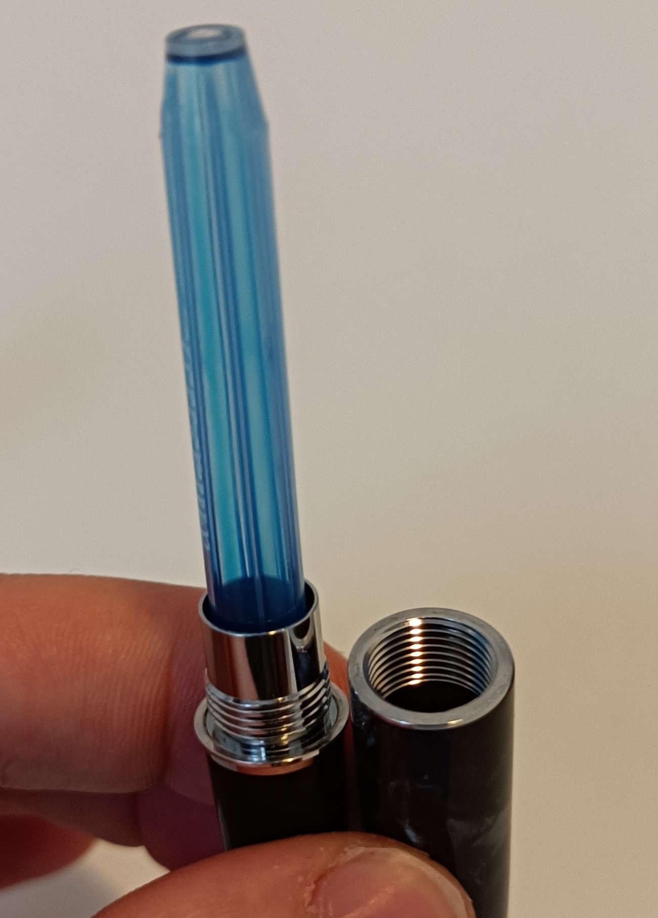Si nota in generale una grande attenzione ai dettagli: la vera centrale, gli anelli, il fermaglio sono fissati e lucidati alla perfezione, e la penna sembra godere di grande robustezza. Questa impressione mi è ispirata soprattutto dall'innesto della sezione e dalla filettatura del corpo, entrambi in metallo.