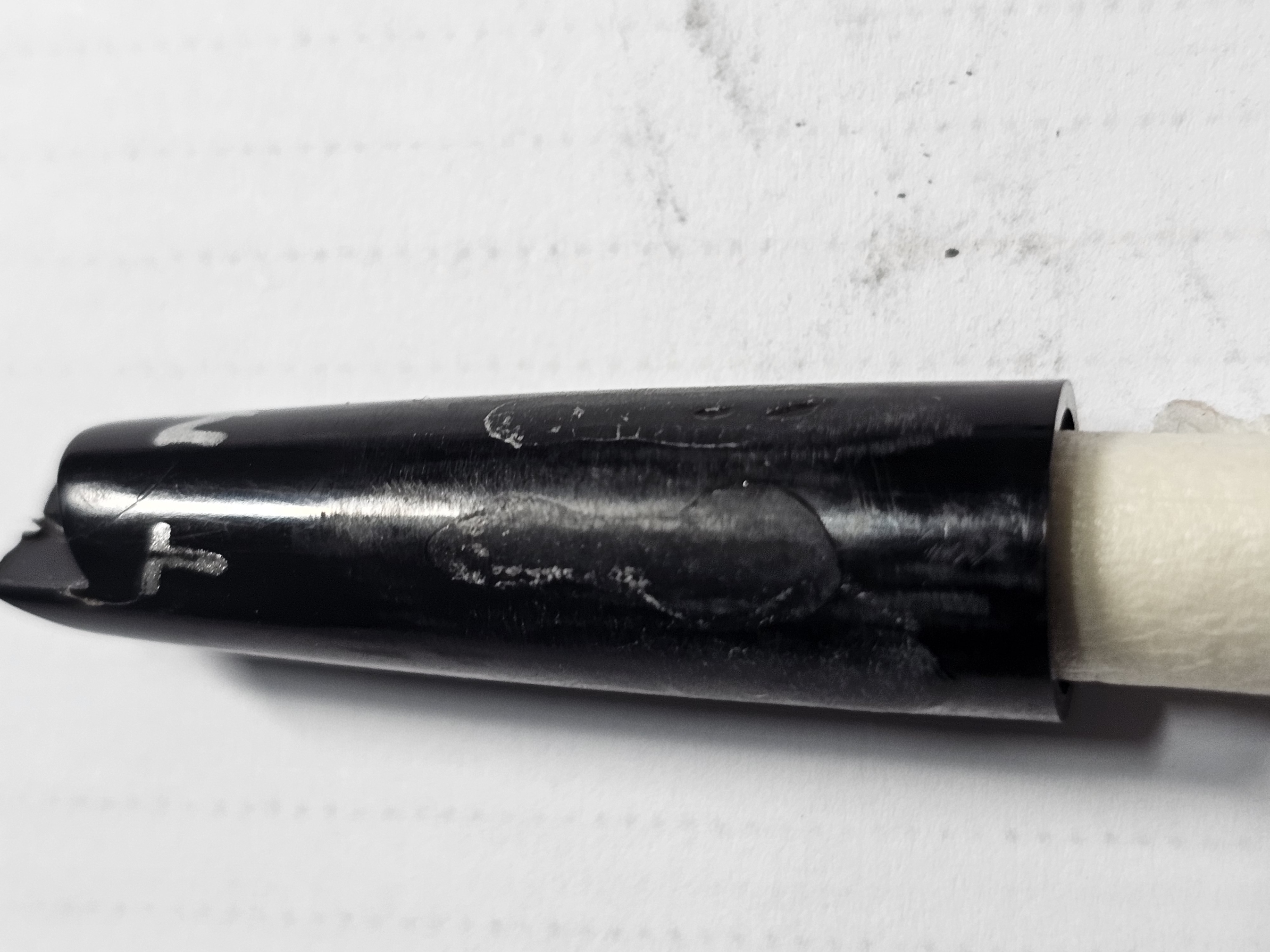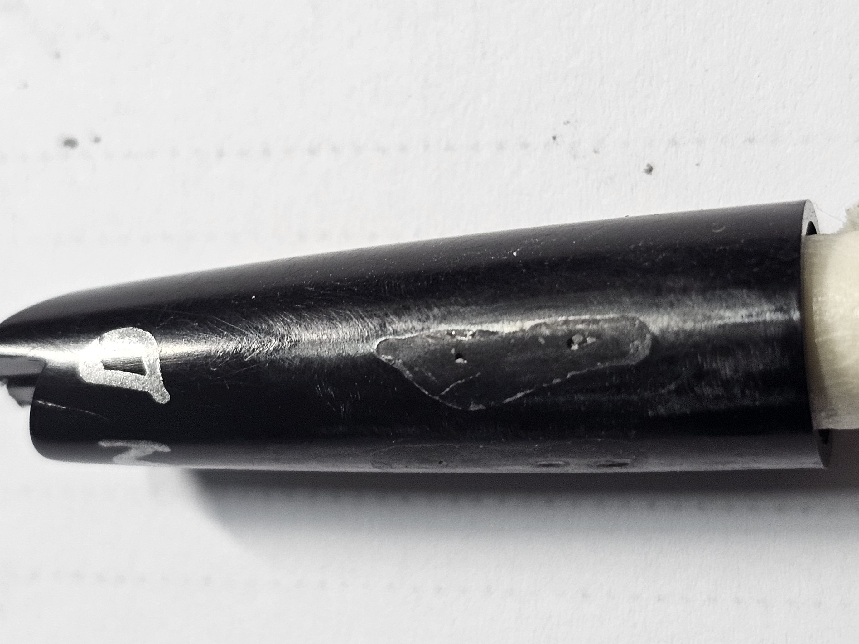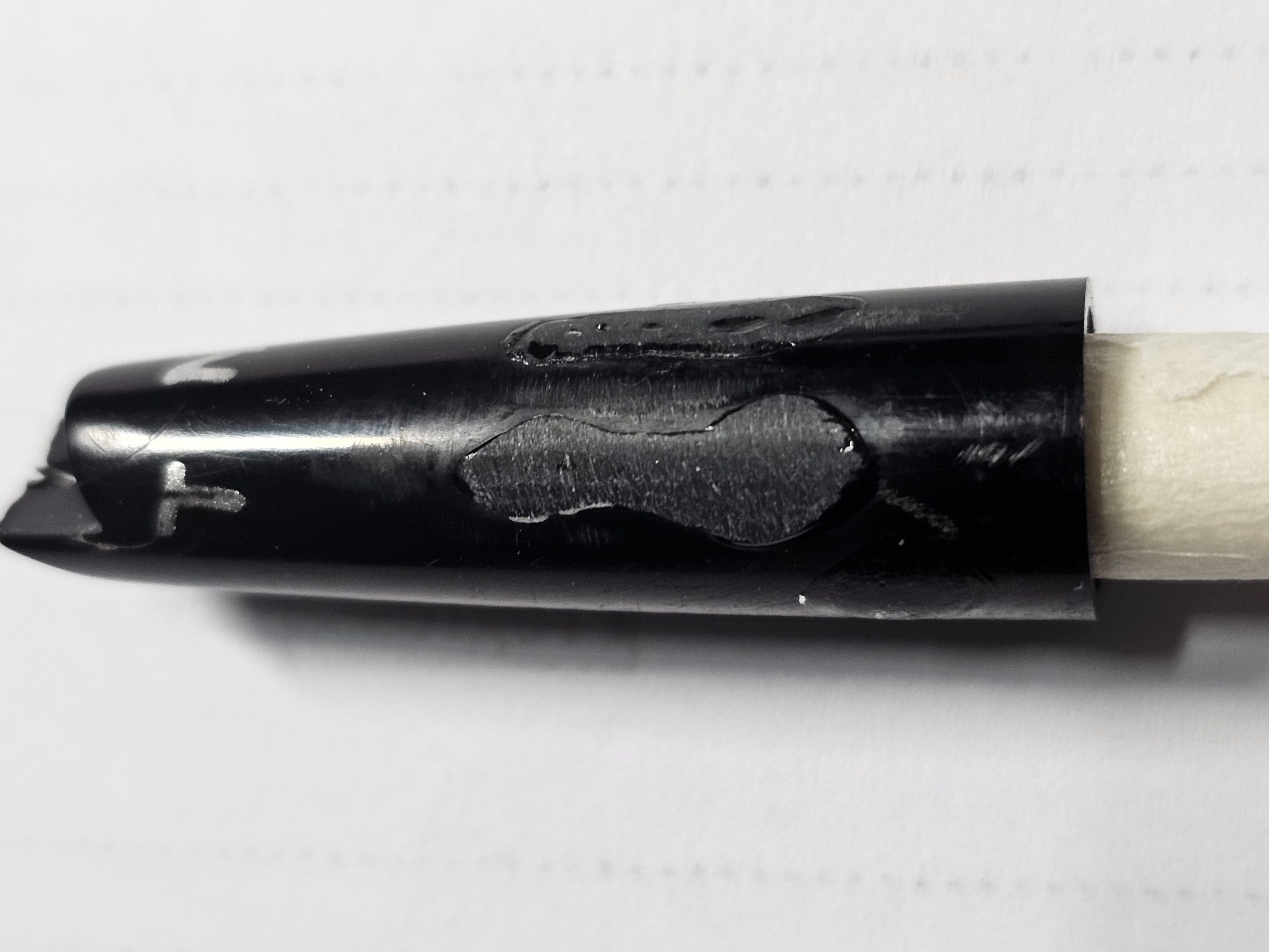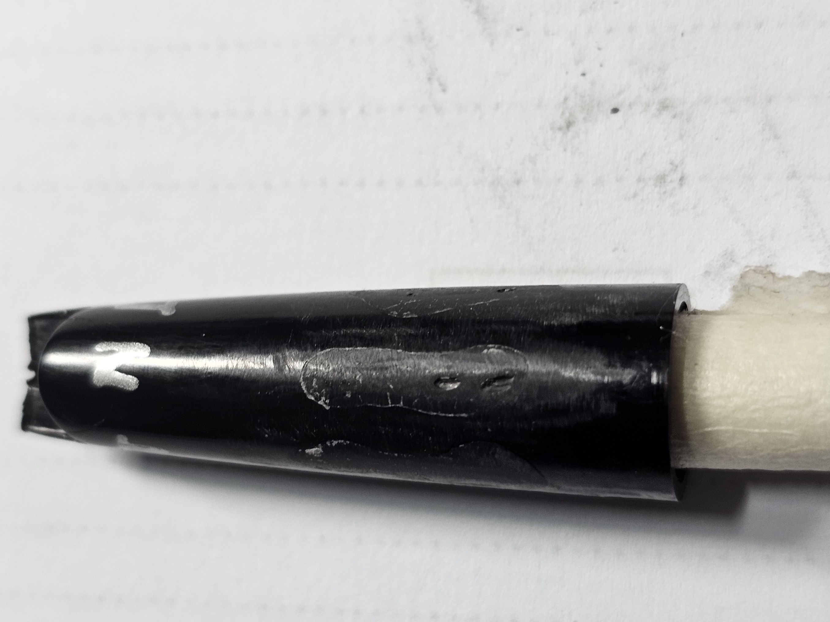 Nel caso specifico di resina nera Montblanc, il cianoaclilato nero da risultati finali migliori, il contro è che il ricalo del materiale è sensibilmente supeiore rispetto al trasparente; questo può comportare disomogeneità e necessità di diverse applicazioni.