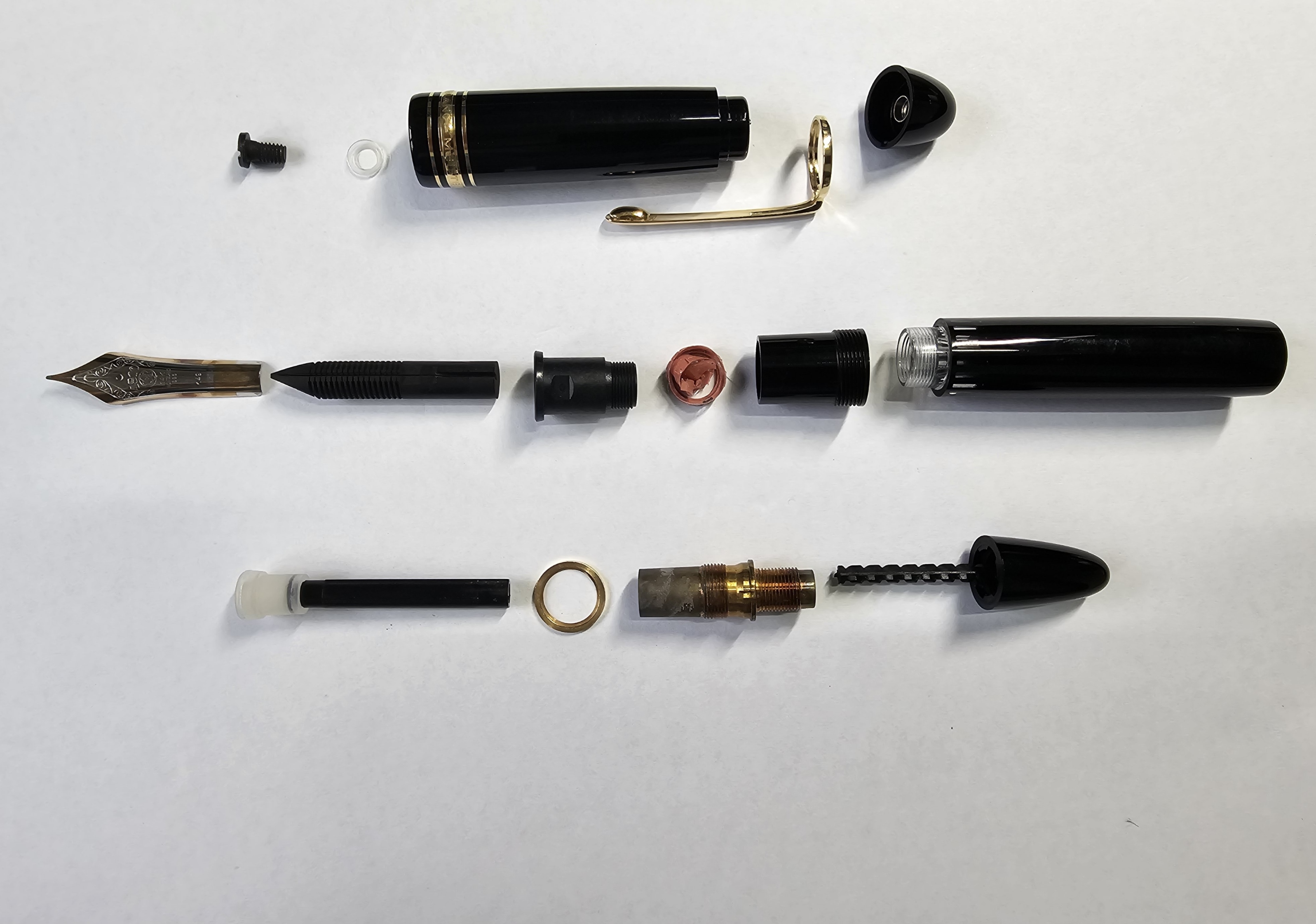 Questo tipo di accorgimento consente, da un lato la solidità dell'assemblamento del gruppo scrittura al fusto, e dall'altro il vantaggio di poter sostiituire il pennino senza la necessità dell'apposito attrezzo; infatti, lo svitamento del gruppo scrittura è possibile con la sola forza delle dita aiutandosi, se necessario, con un piccolo pezzo di gomma (es camera d'aria di bicicletta) per fare attrito.