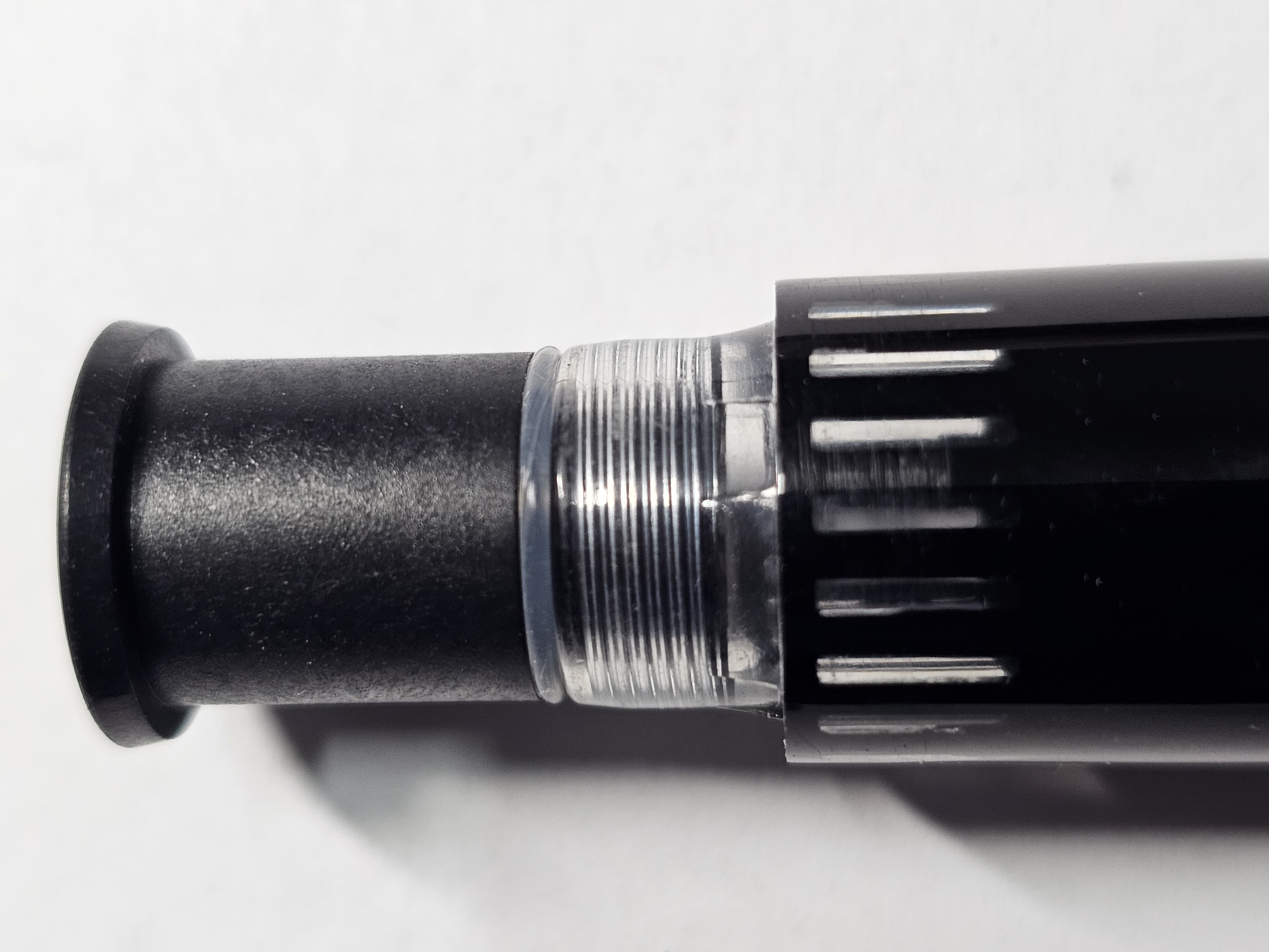 La scelta di diametro e corda, è stata fatta dopo diversi test, in modo tale che sia garantita la tenuta, ma anche che dopo l'avvitamento del gruppo scrittura sul fusto l'o-ring deformandosi eserciti solo una leggerissima pressione; ciò al fine di non stressare meccanicamente la seconda parte del fusto.