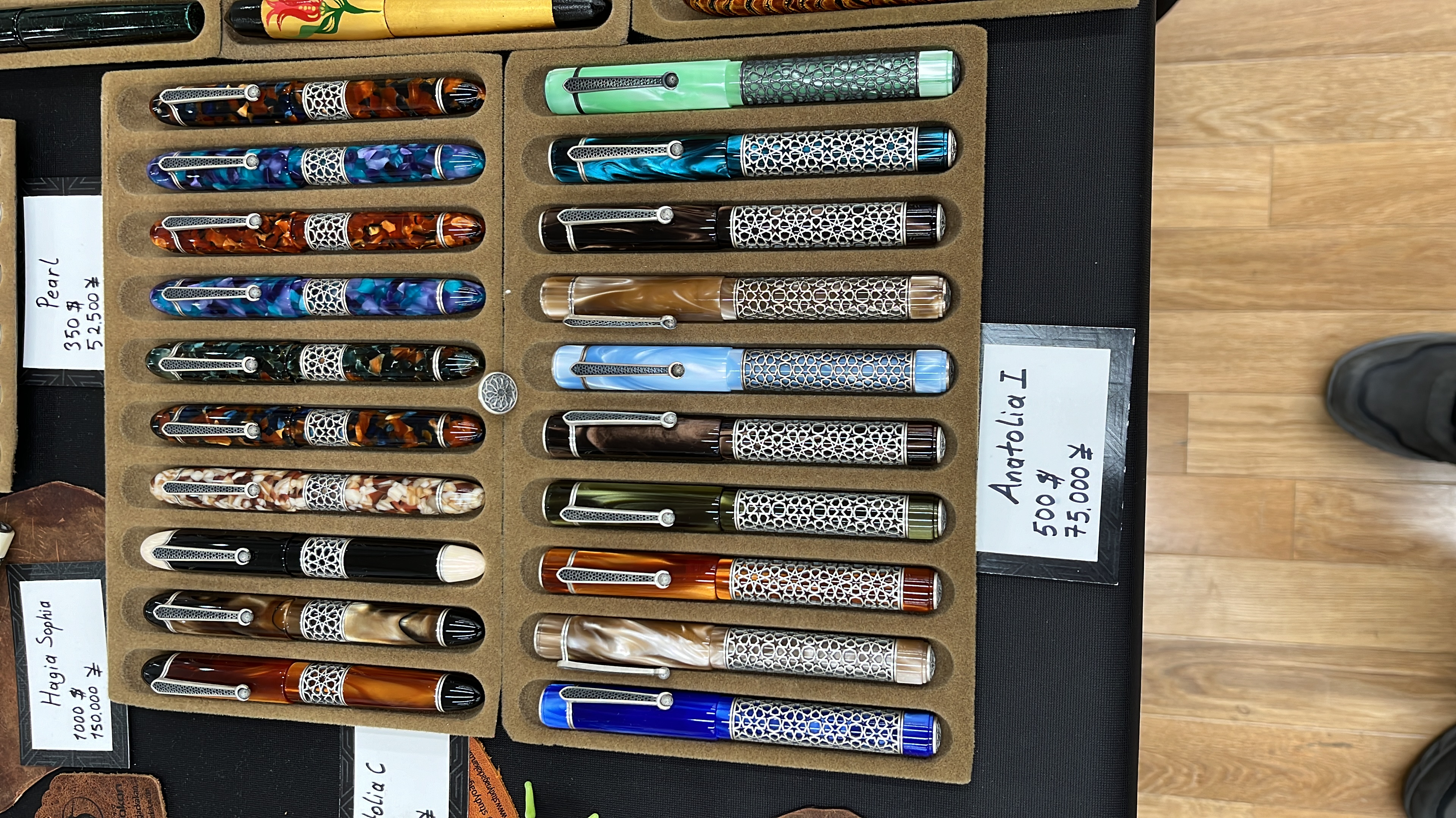 Il fatto che non ci fossero molte penne vintage non mi scandalizza, a volte i nostri pen show sembrano dei musei. Bello per carità, interessante vedere e toccare le vecchie glorie, però anche poter accedere alle nuove produzioni in un pen show non è male, anzi forse sarebbe auspicabile che accadesse di più anche da noi. Poi il Giappone è la patria delle produzioni artigianali con tecniche sofisticate di decorazione e laccatura, quale posto migliore per vederle e provarle. Fosse stato per me avrei dedicato tutto il tempo unicamente alle ebaniti (il resto posso vederlo altrove!), temo che ne avrei portate a casa una manciata!