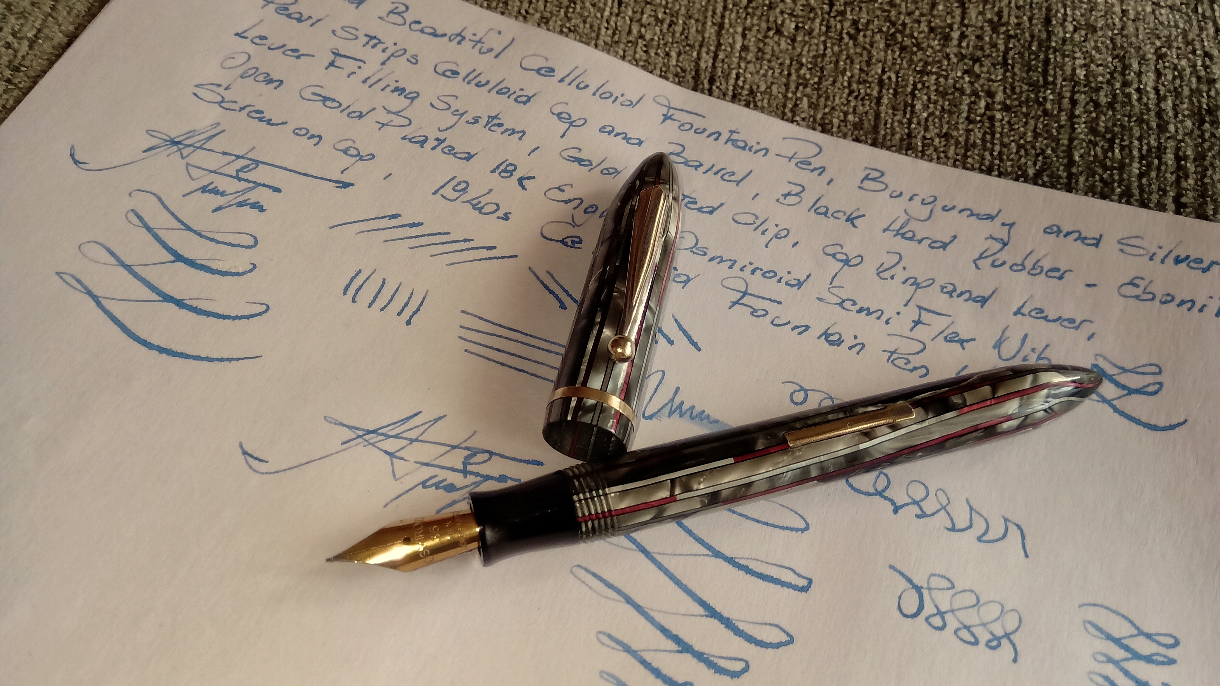 Ora è la volta di una bellissima penna stilografica Packard Ralph Mengel modello Wembley 200 anni 50/60 con sistema di caricamento aerometrico, impugnatura in ebanite nera e corpo in galatite nera, cappuccio e clip incisi e dorati, pennino ricoperto Hunt Co. placcato in oro e prodotto negli Stati Uniti....