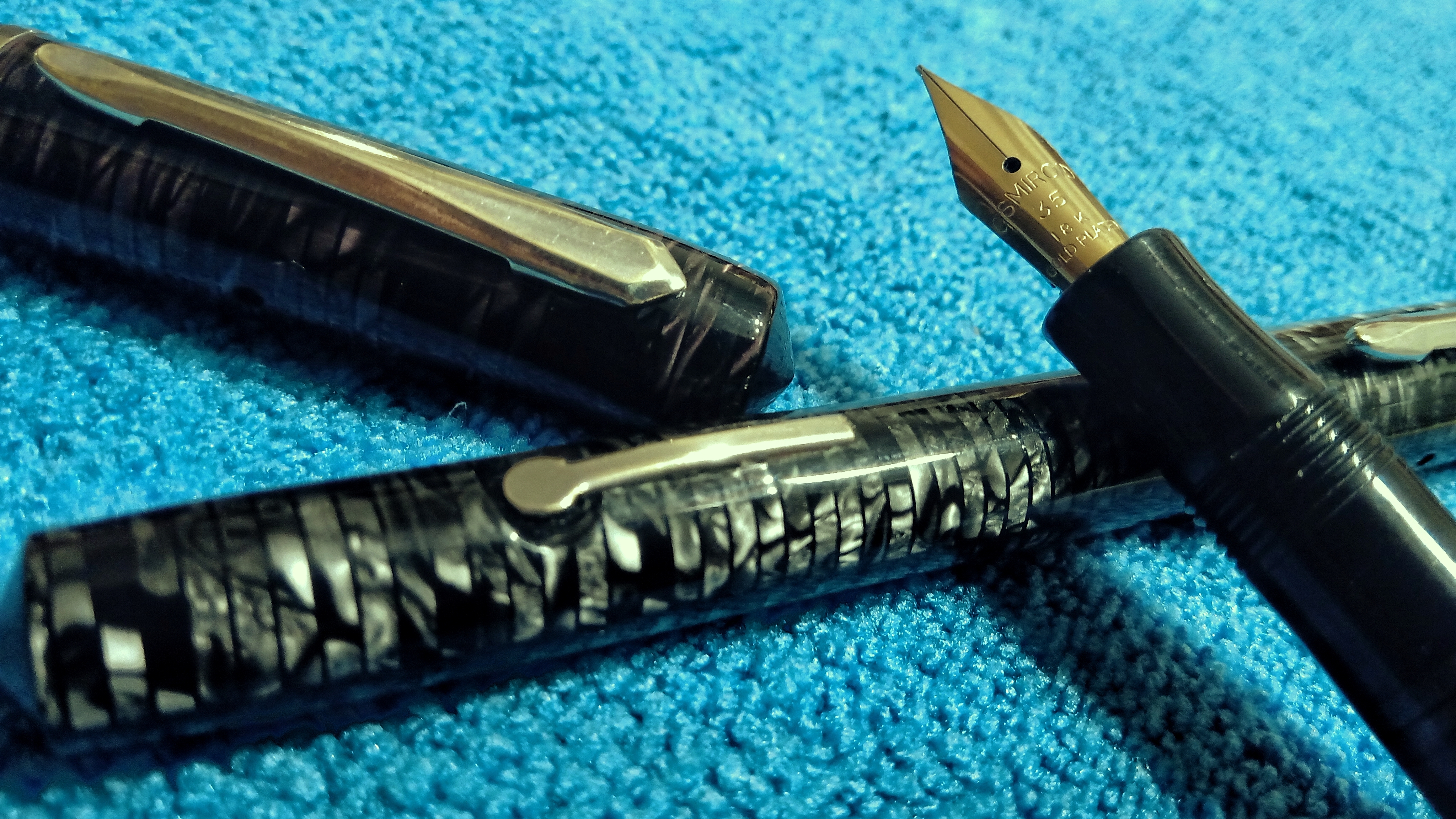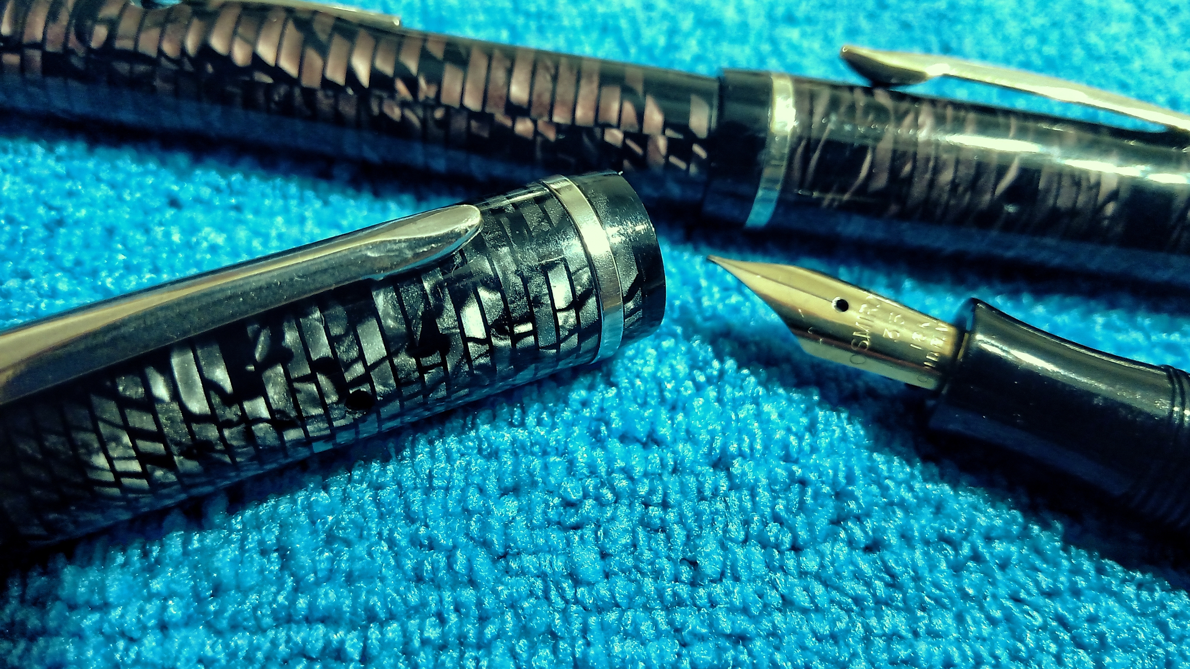 Ora è la volta di una bellissima penna stilografica Packard Ralph Mengel modello Wembley 200 anni 50/60 con sistema di caricamento aerometrico, impugnatura in ebanite nera e corpo in galatite nera, cappuccio e clip incisi e dorati, pennino ricoperto Hunt Co. placcato in oro e prodotto negli Stati Uniti....