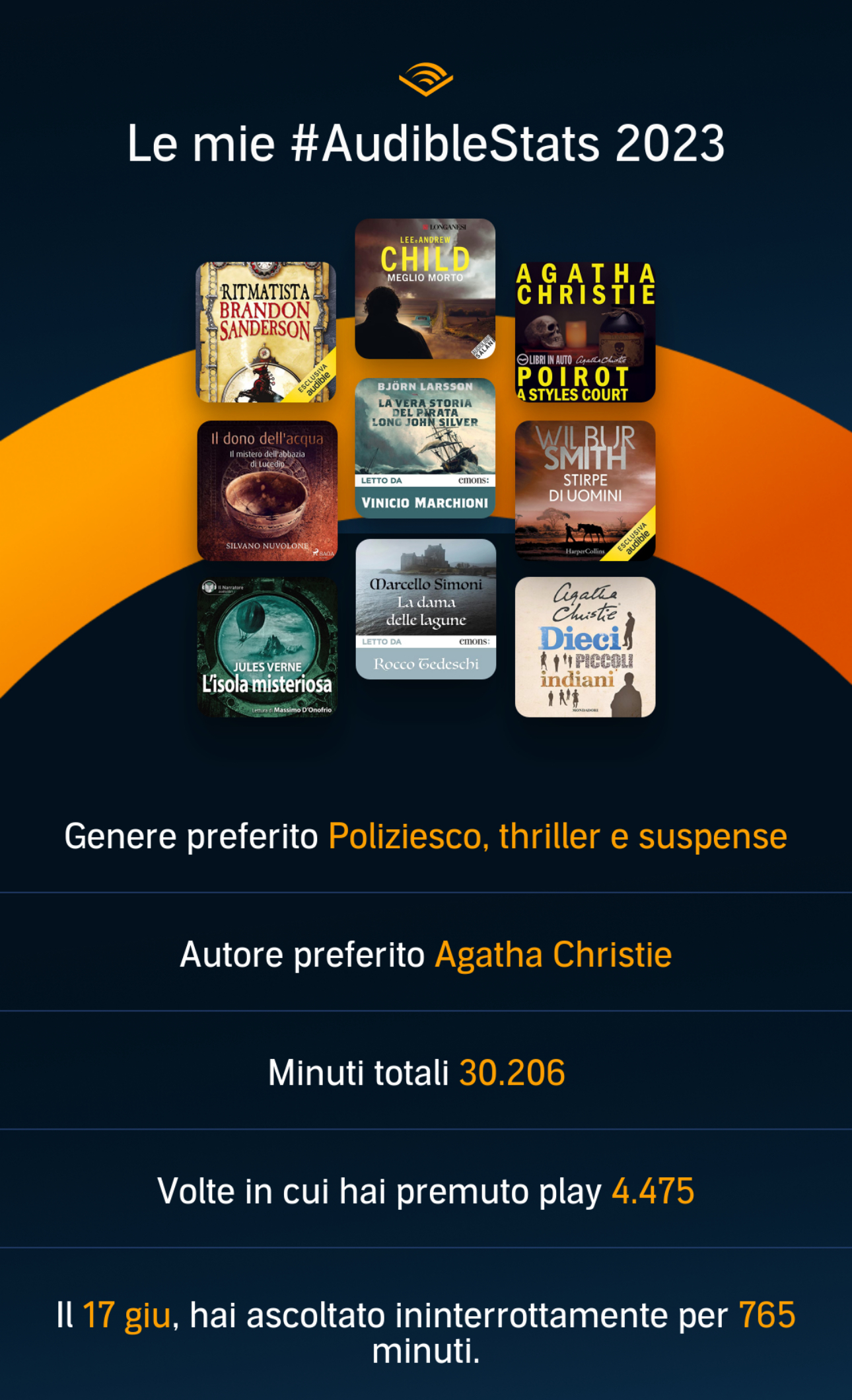 ci ho provato proprio oggi con tre libri: 'Le armi della luce' di Follett che ho piantato lì dopo un'ora, non mi piaceva proprio il contenuto del testo, un altro di Alice Basso, di cui non ricordo il titolo, ma la voce era così odiosa che ho piantato lì dopo 3 minuti, ed invece mi sta piacendo molto 'La casa degli sguardi' di Mencarelli. Penso che proverò anche con Agatha Christie e Simenon. Per ora ho la prova gratuita di Amazon, così ho tempo un mese per abbonarmi se mi piacerà ascoltare i libri che in effetti mi piace ascoltare, mentro faccio qualcosa di manuale e non posso tenere il kindle in mano :)