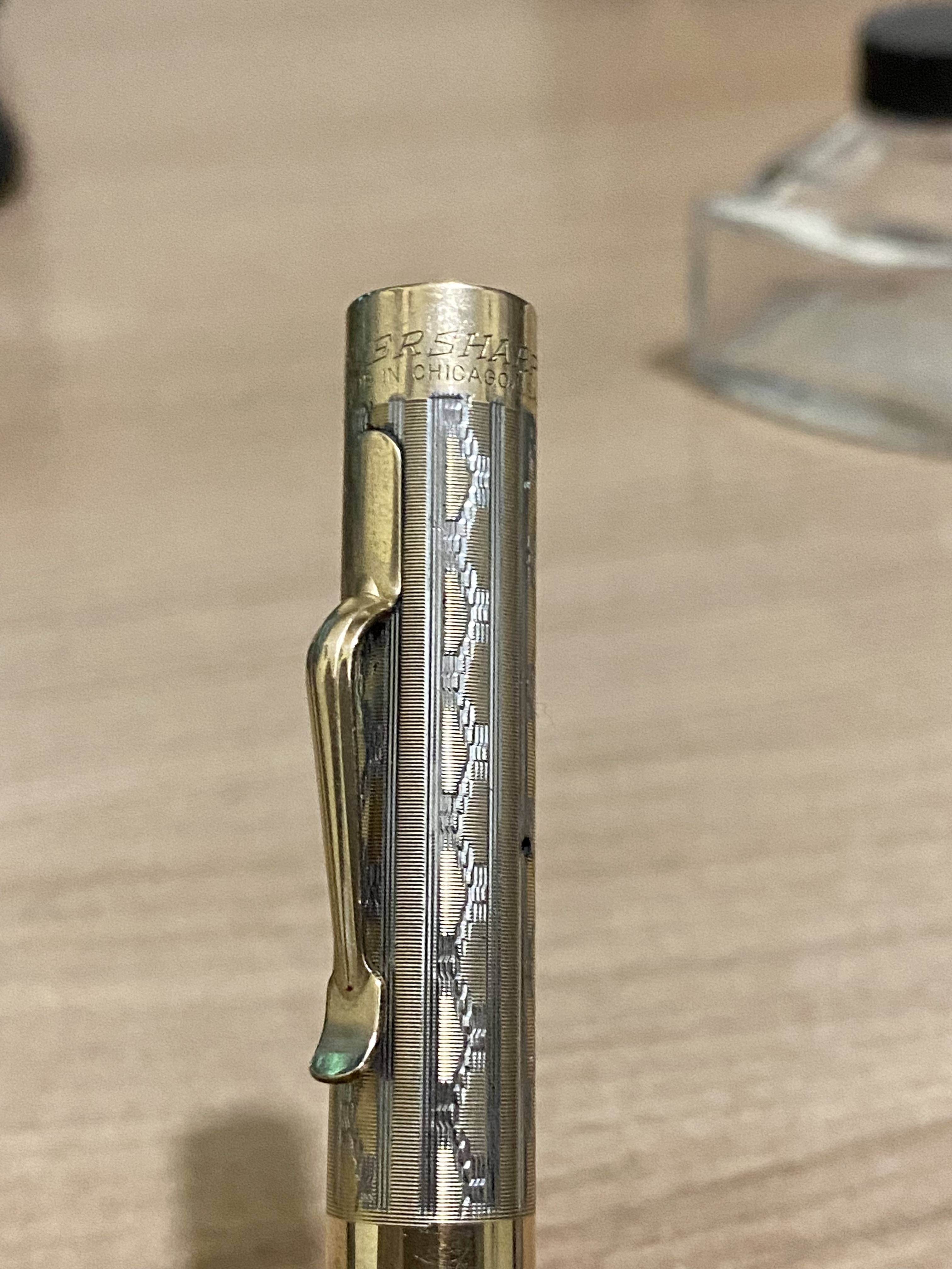 Peso: 20.3gr La penna mi è giunta con un pennino Signature, è così piacevole che mi fa letteralmente emozionare quando lo poggio su carta. Ve lo mostro bello sporco di inchiostro, perchè non si può non usare un pennino del genere montato su una bellezza del genere. Stando a informazioni reperite in rete, il pattern Wedgewood è stato prodotto tra il '27 e il '28, anno in cui nasceva il Gold Seal. Pertanto, direi che a meno di una sostituzione, la penna è databile al 1928.