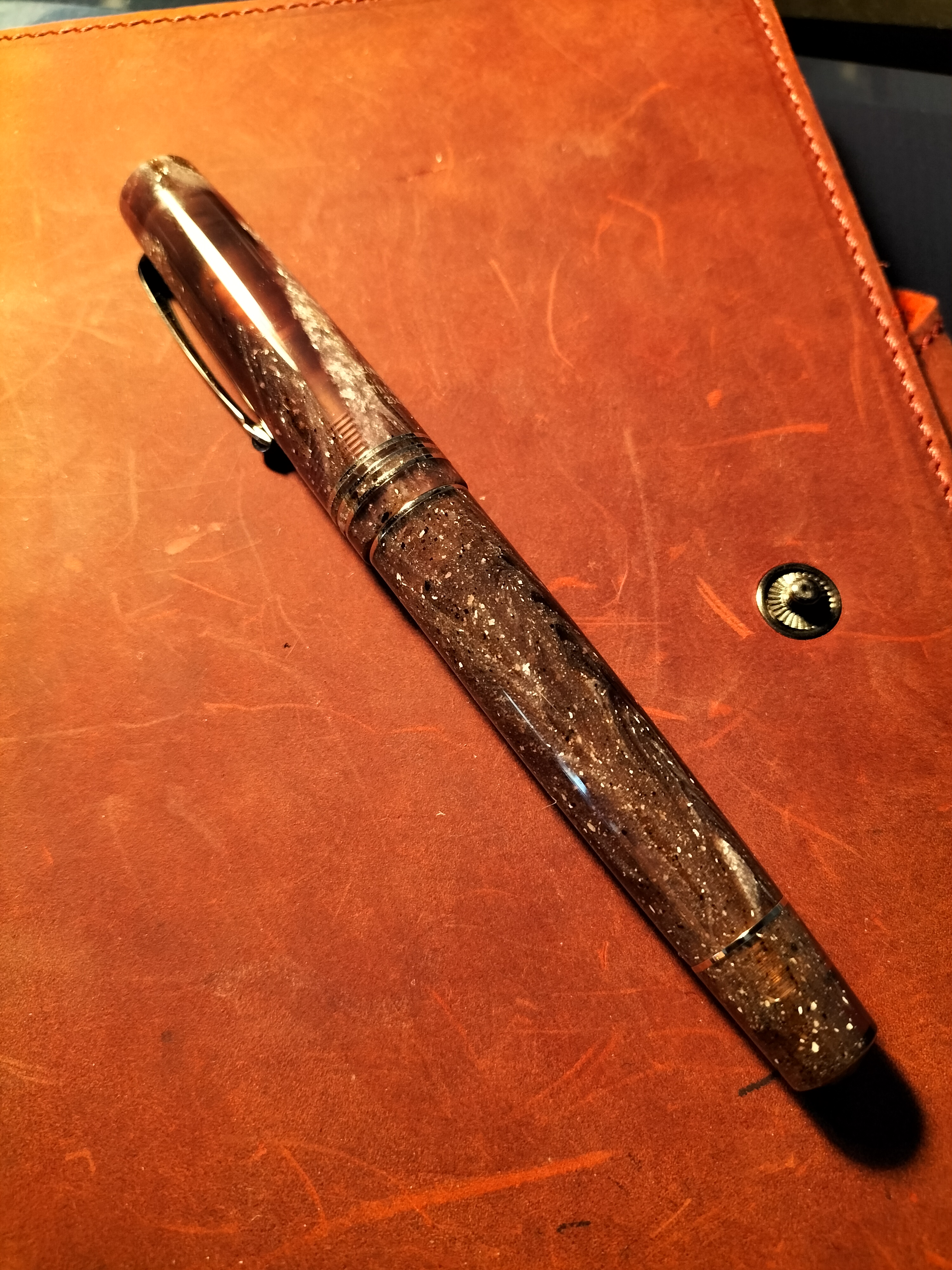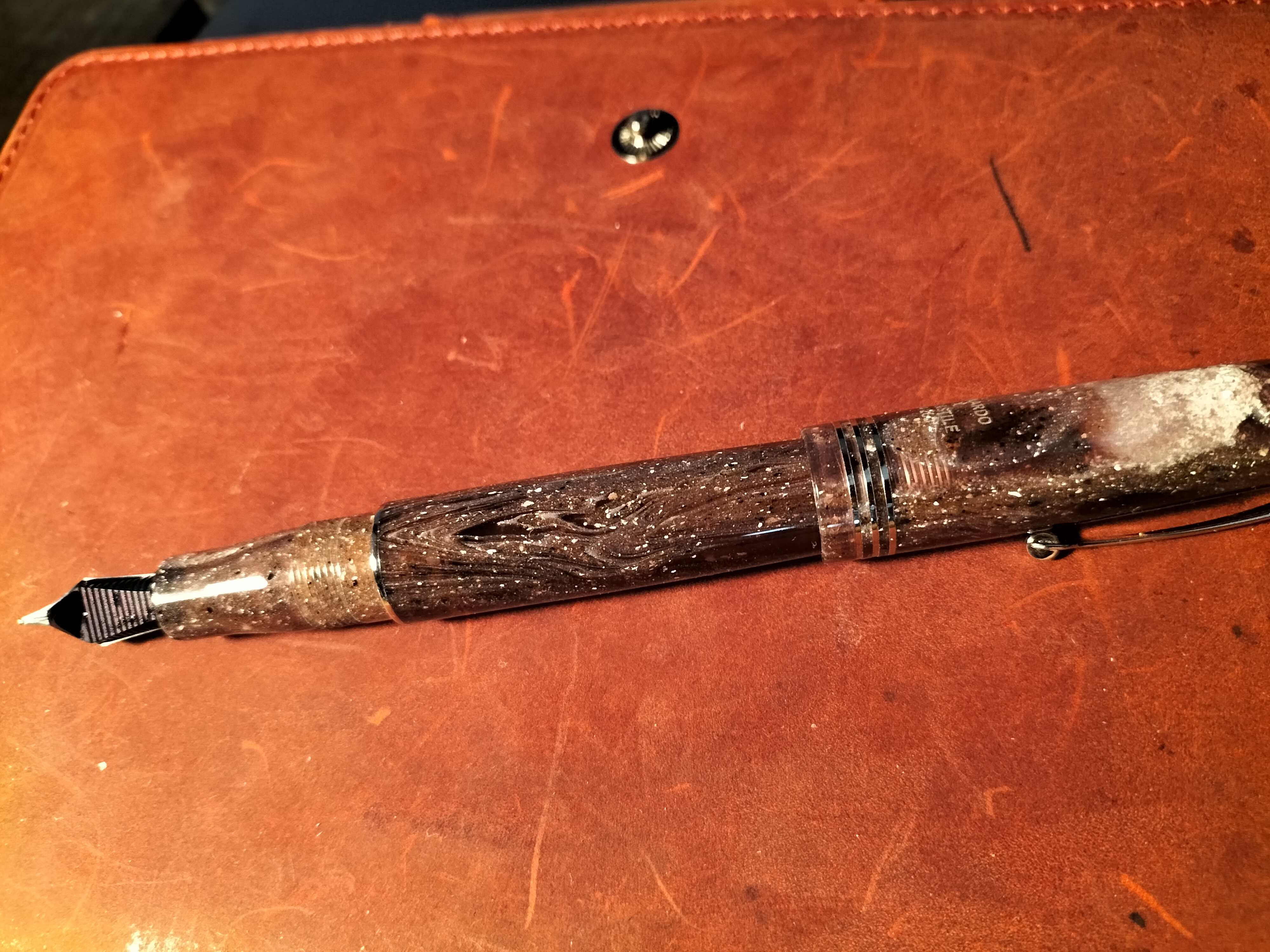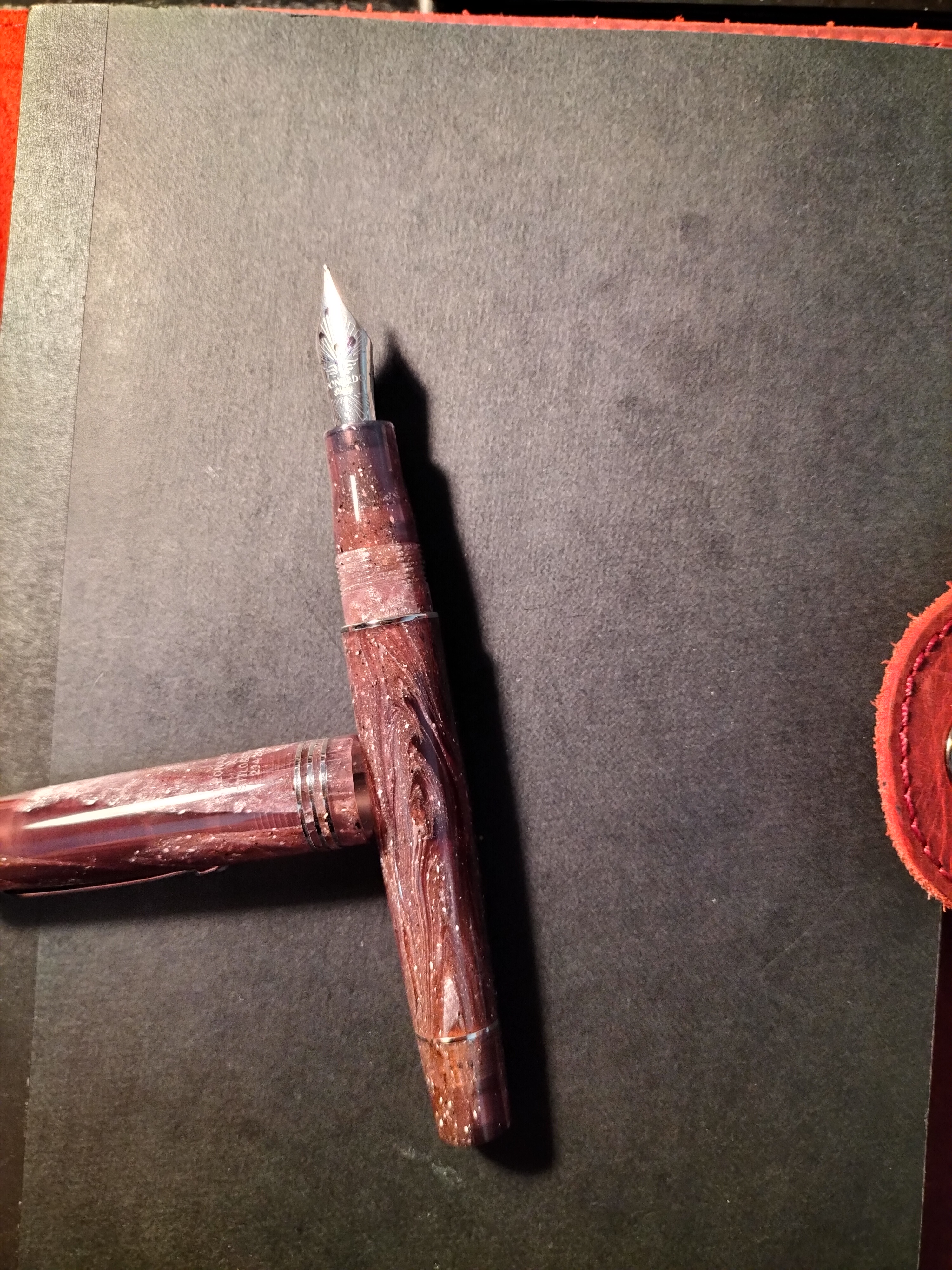Scorrevolezza in linea con i pennini della serie, ossia ottima. Si tratta del nuovo pennino in acciacio chiamato "La Fenice" La resina presenta una colorazione "effetto galassia"