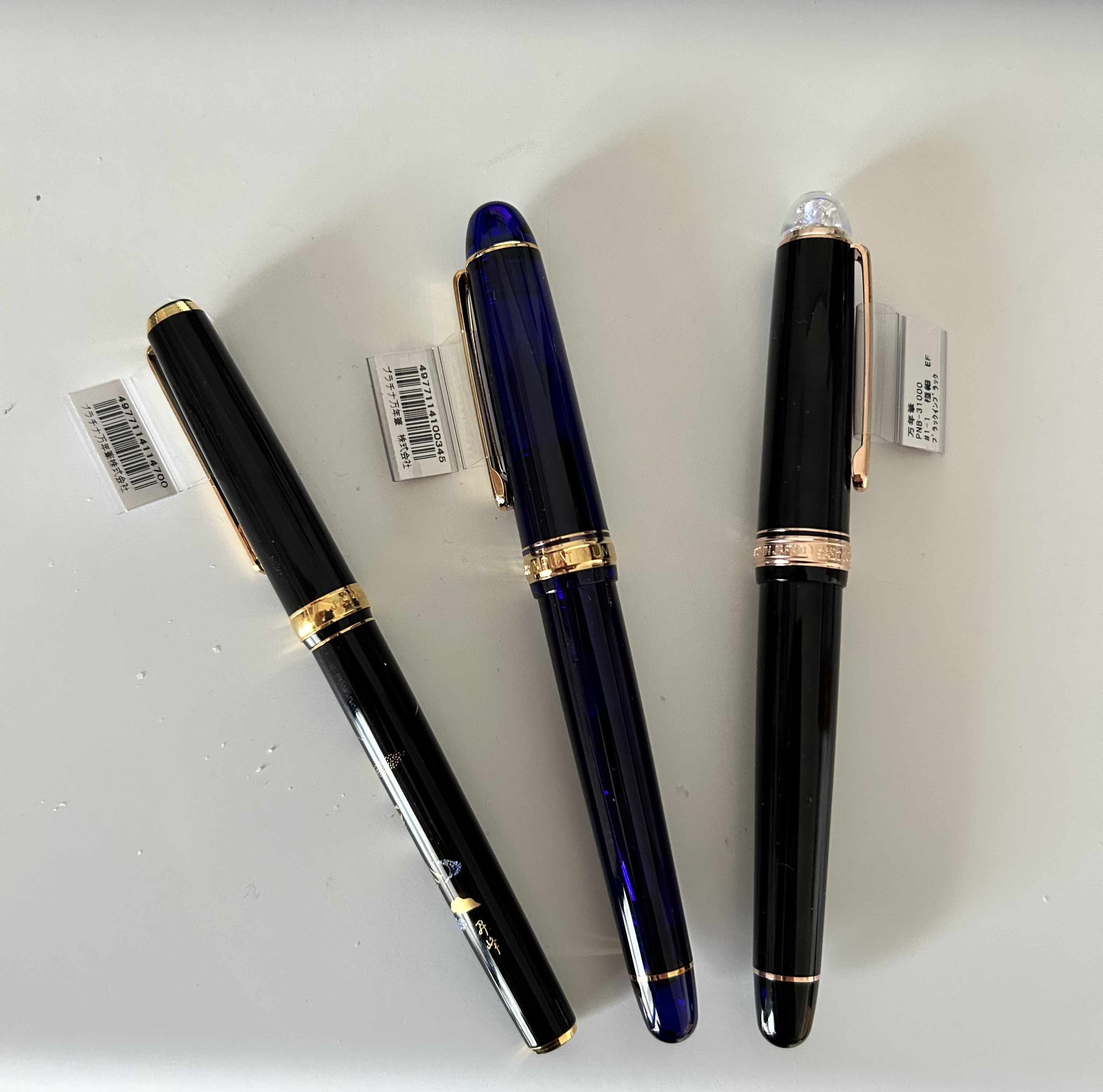 L'ultima a partire da sinistra è la Platinum 3776 Shape of Heart.