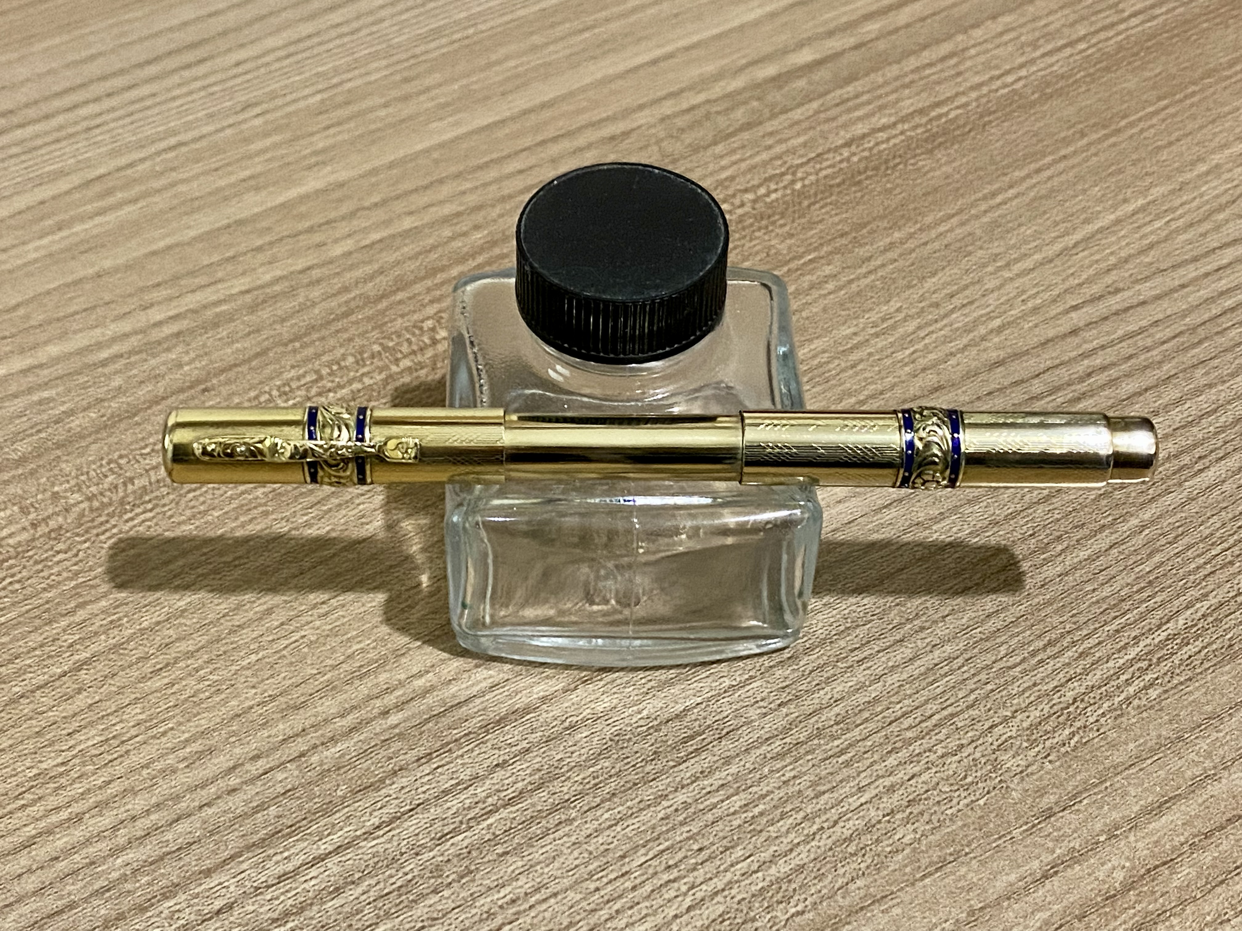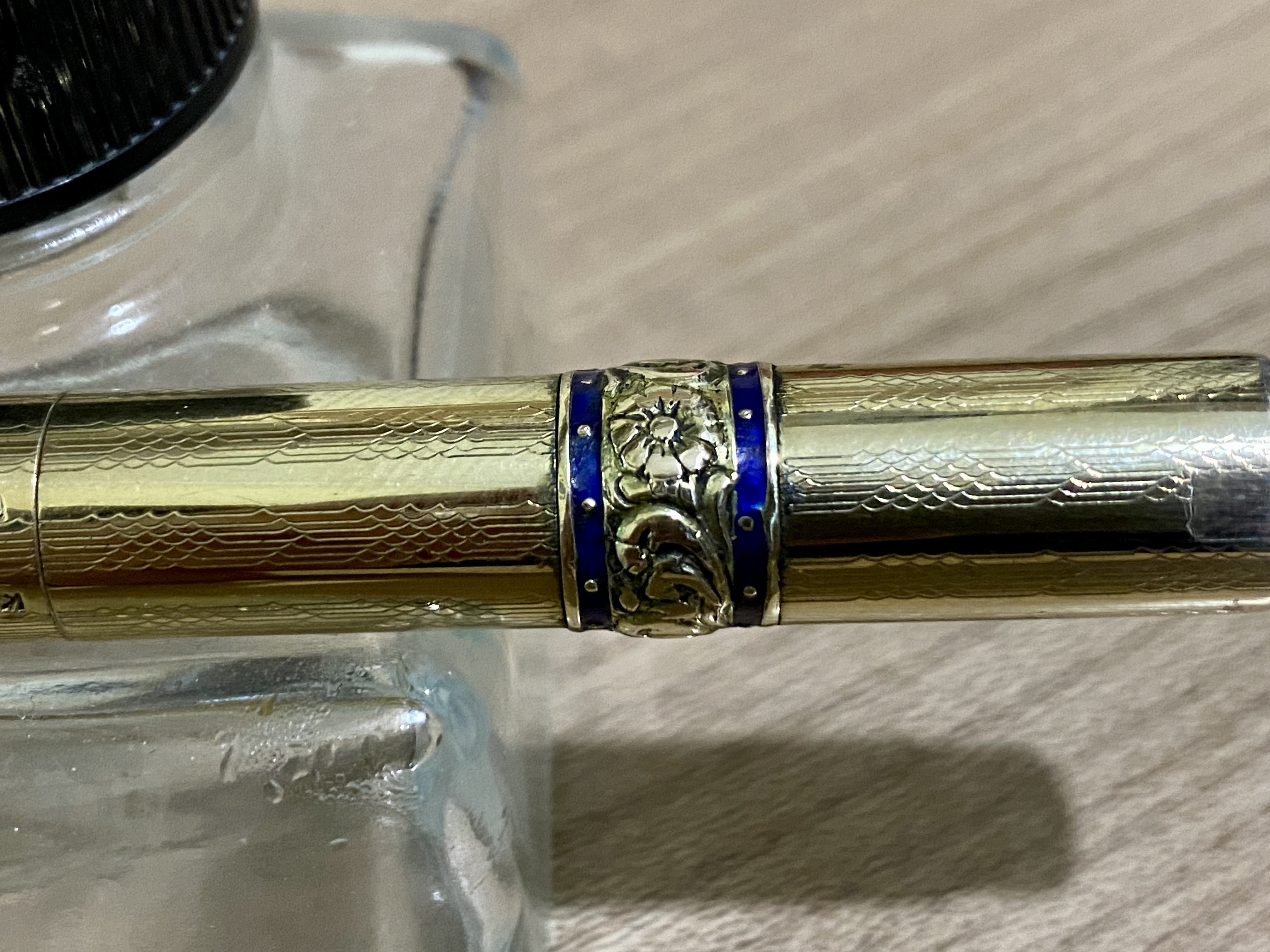 Tuttavia, Kaweco commissionava le laminature inizialmente a Uhlmann’s Eterno e successivamente a Cavaliere. Ma se consideriamo sia il suo periodo di produzione che (soprattutto) la tipica decorazione a smalti e fioriture a sbalzo, si può' ritenere molto verosimile che la laminatura sia stata realizzata Eterno.