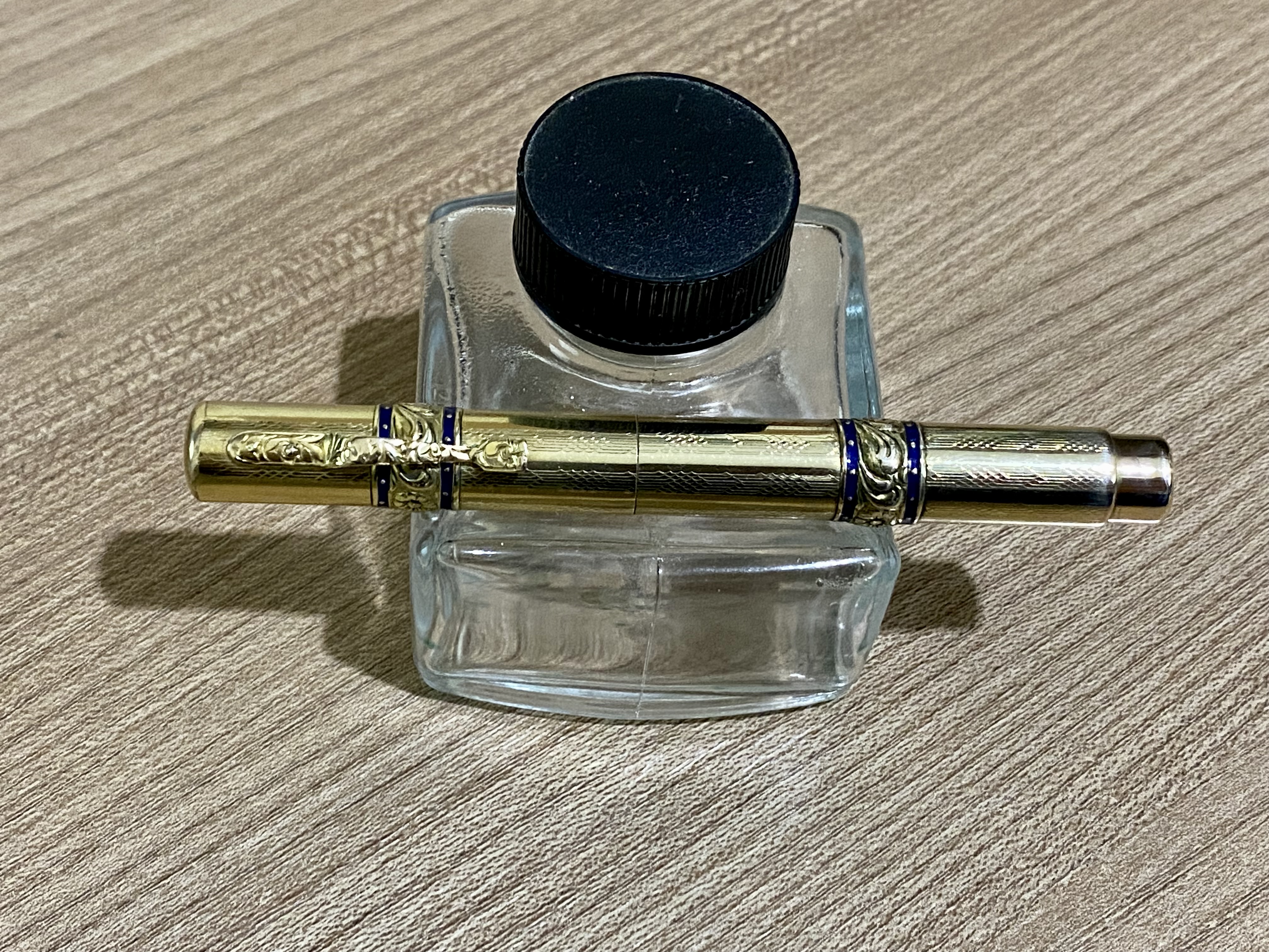 La ricarica della penna è a contagocce, sicuramente il sistema più affidabile e funzionale per questo tipo di penna, soprattutto considerando che parliamo di una penna di un secolo fa.