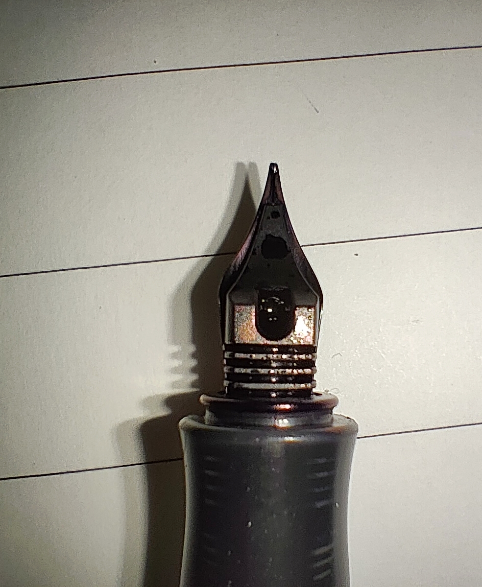Il pennino è in acciaio, misura F, ma è molto contenuto, sembra quasi EF (europeo).