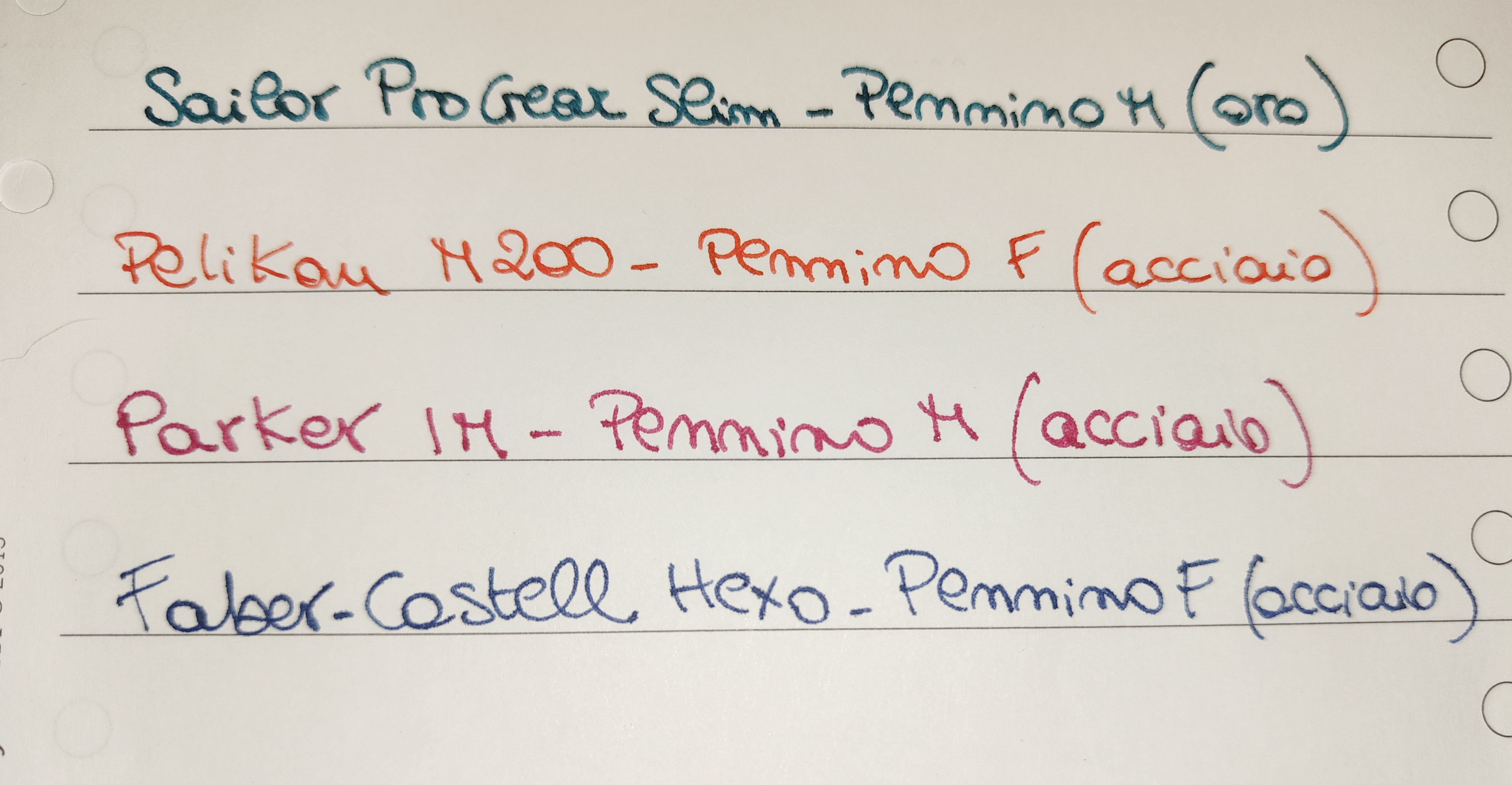 (Le prove di scrittura sono con le penne che ho caricate in questo momento, non so se ha senso come confronto perché sono penne/pennini completamente diversi, ma è giusto per farsi un'idea).