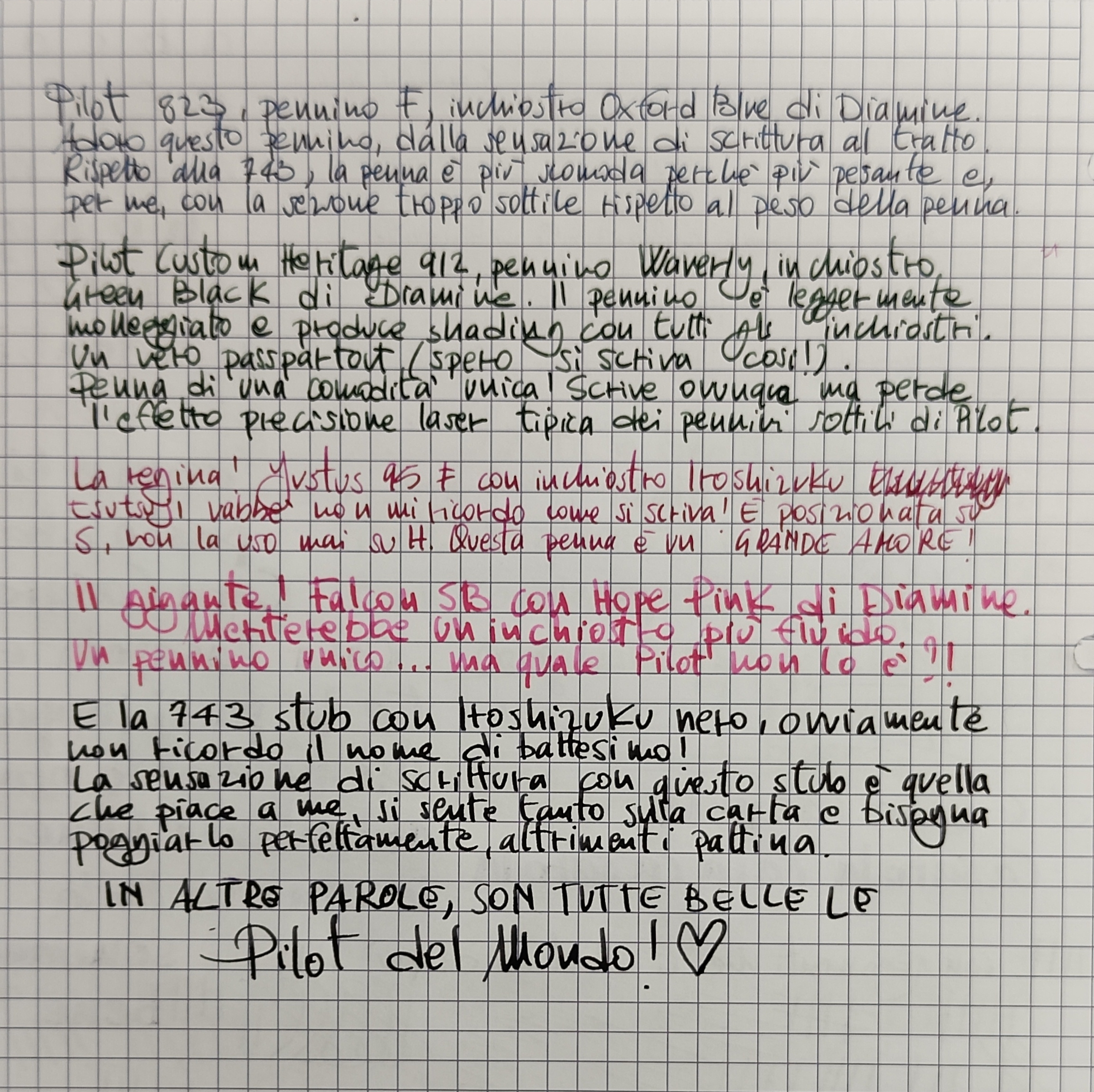 quando ci siamo visti l'ultima volta e ho provato alcune delle tue Pilot sul mio quadernino ho scritto