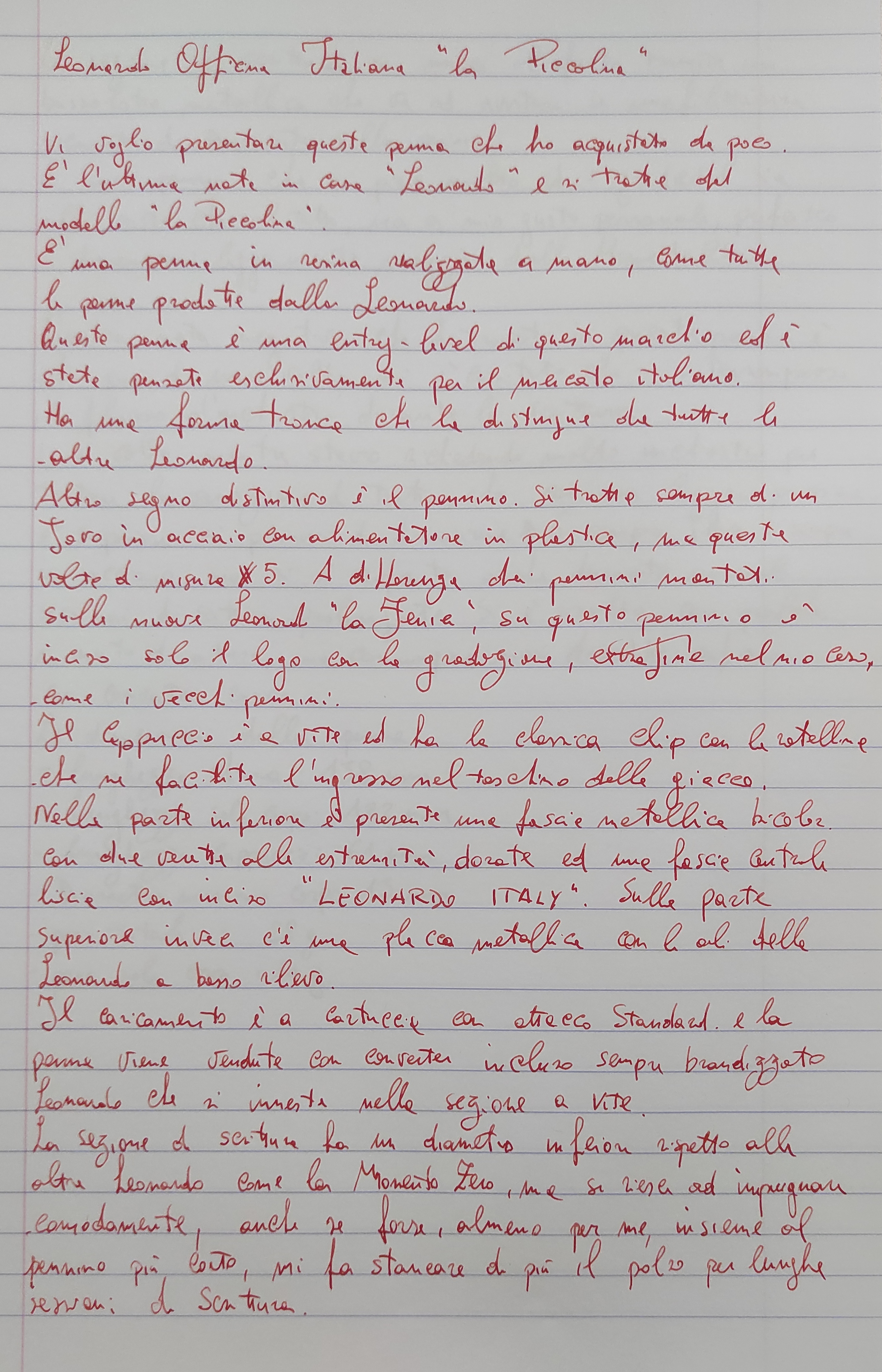 Non ho mai scritto in questa sezione del forum, ma non avendo trovato recensioni di questa penna, ho voluto condividere con voi le mie sensazioni.