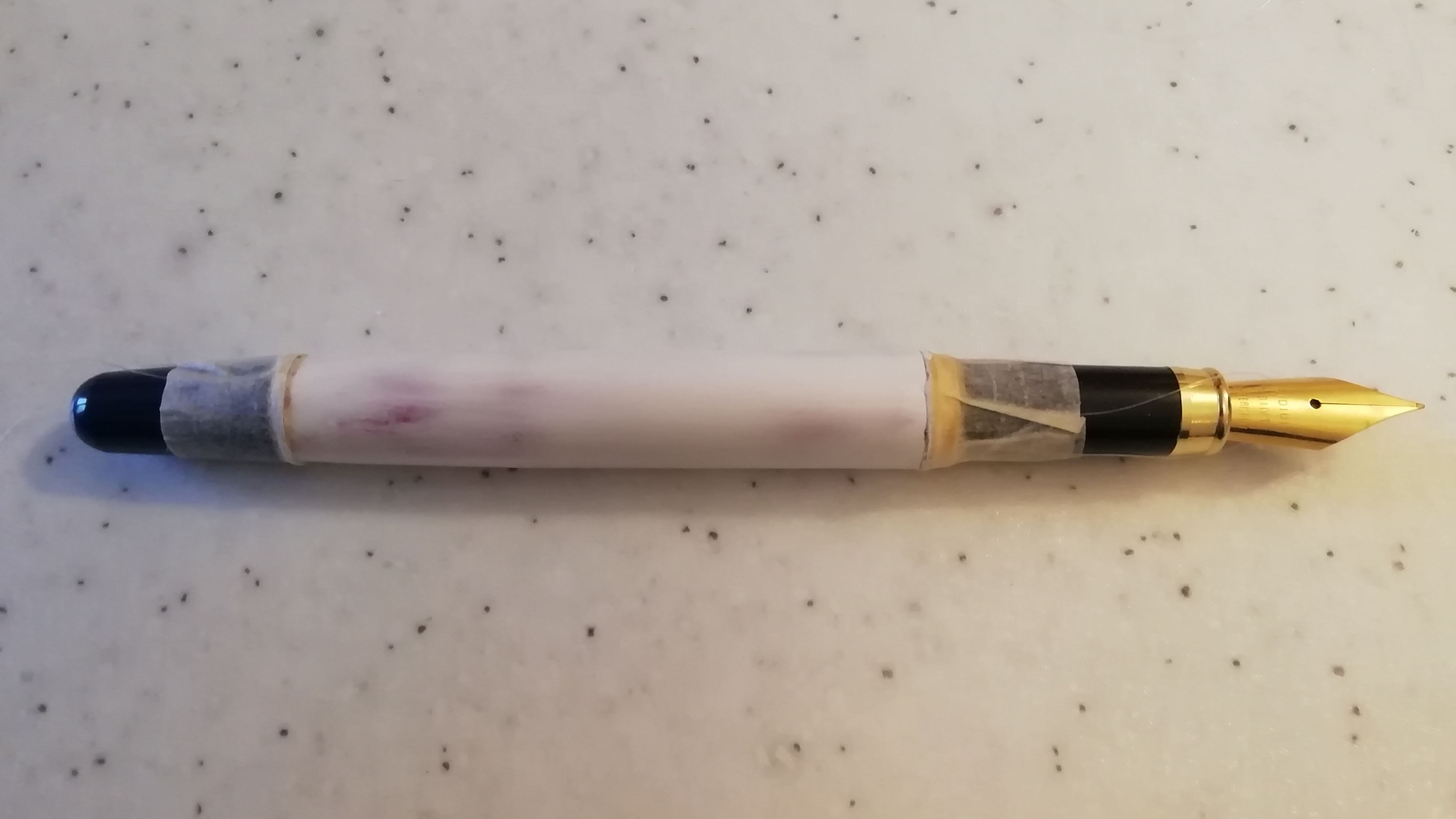 Con una penna come questa, con il codolo che non andava revisionato, si può anche appoggiare sezione e fondello su due bassi sostegni e ruotarla via via.