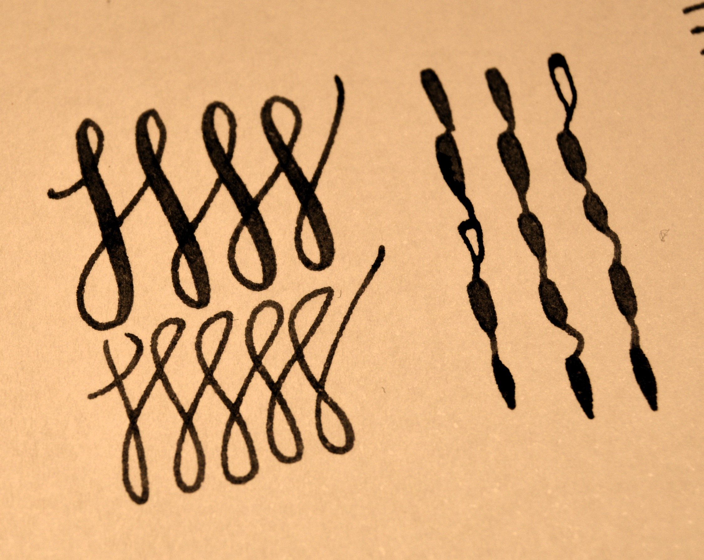 Questa Feel è la prima penna che acquisto che sia dichiaratamente dotata di pennino flessibile: non mi spingerò in paragoni che non posso fare, non avendo altre penne con punta flessibile in collezione, ma devo dire che ho trovato "divertente" l'usare questo tipo di pennino: la variazione di tratto è, a mio avviso, notevole e alterna bene tra un buon F senza pressione ad un abbondante, anche in flusso, B o BB con pressione minima o moderata.