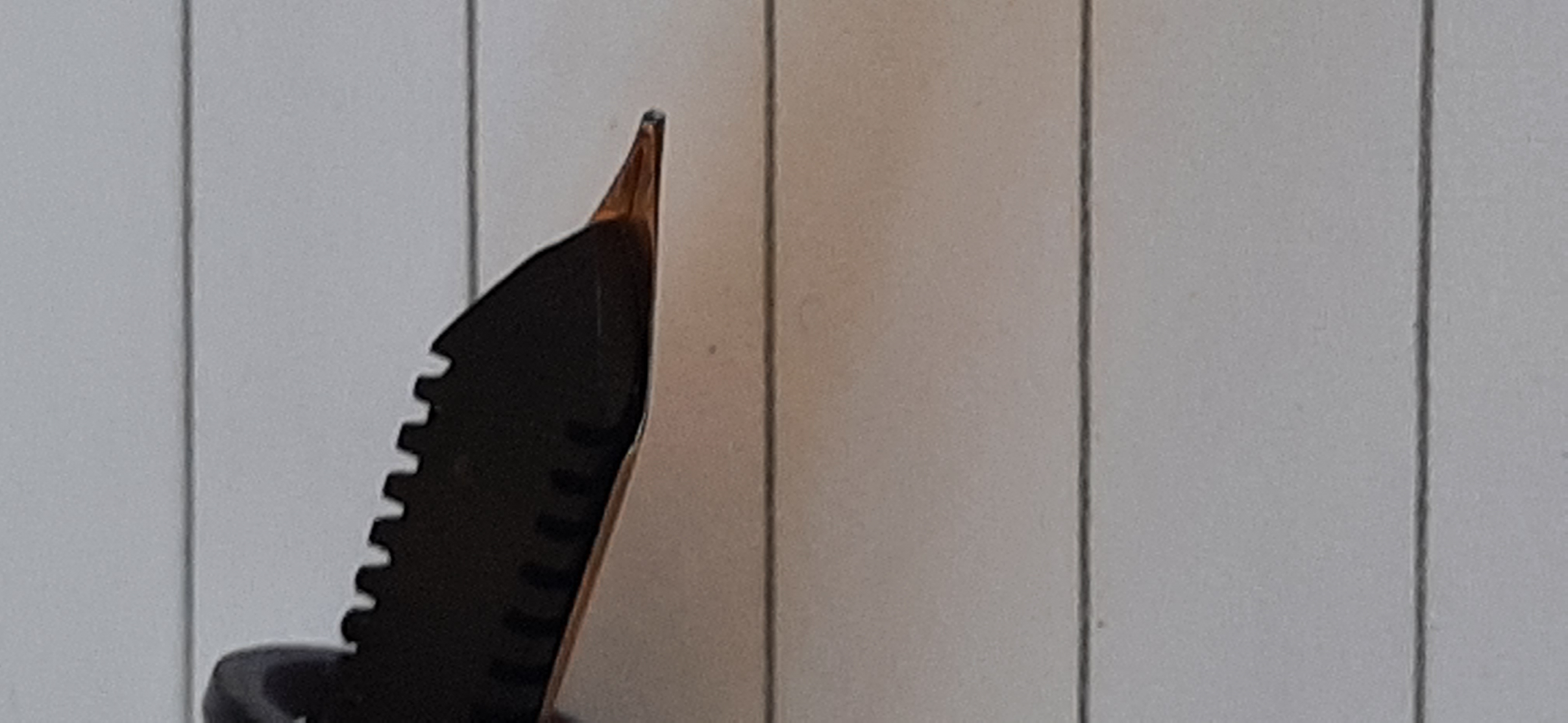 Così a occhio dalle foto sembra che il rebbio di sinistra sia più alto del destro, per il resto sembra a posto, forse basta riallineare i rebbi e magari una lucidata alla punta con la micromesh per renderla più liscia.