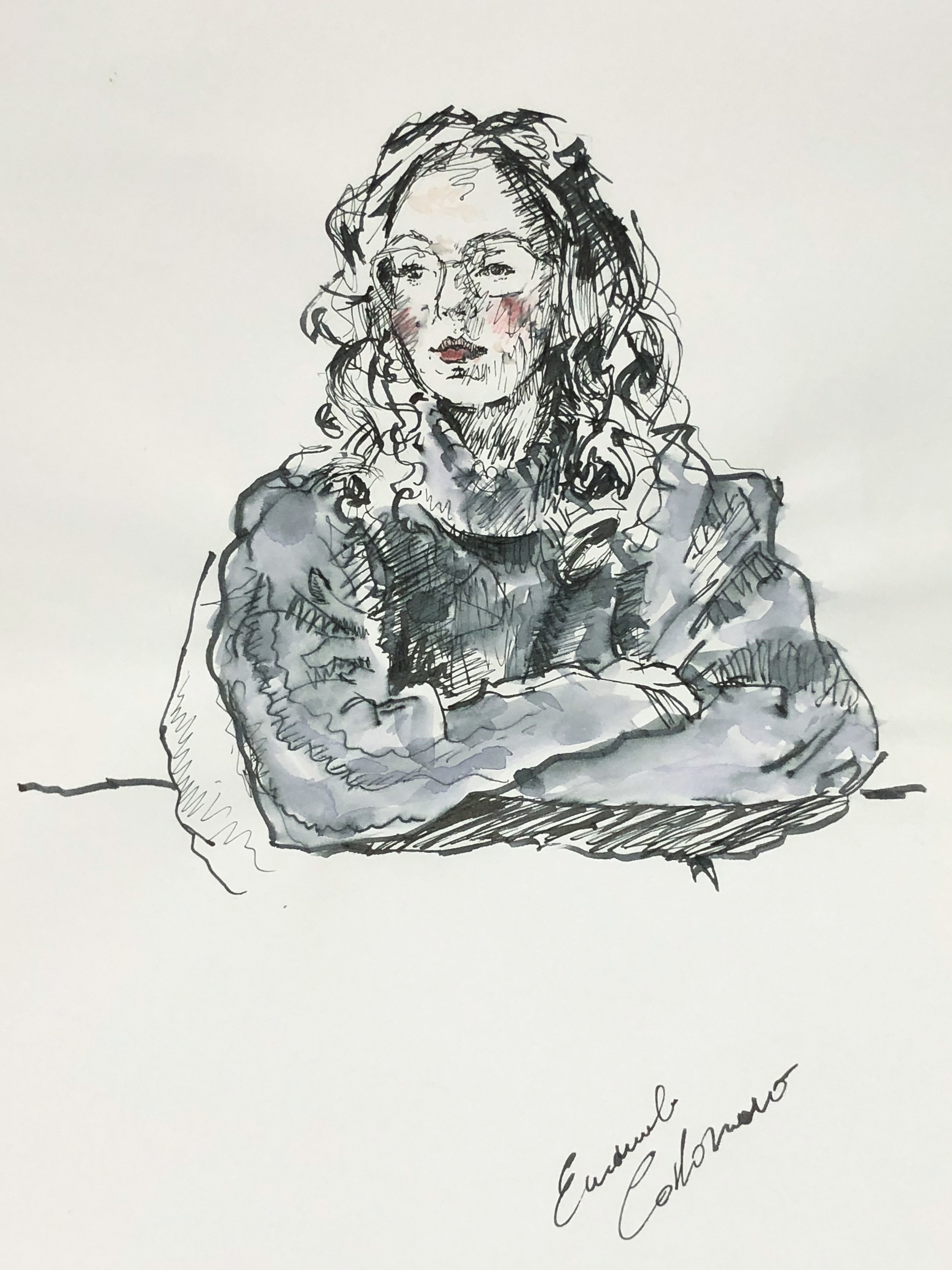 Ritratto della mia ragazza Daniela. Il primo ritratto con pennino fude, sailor profit, carta rhodia, inchiostro cartuccia sailor.