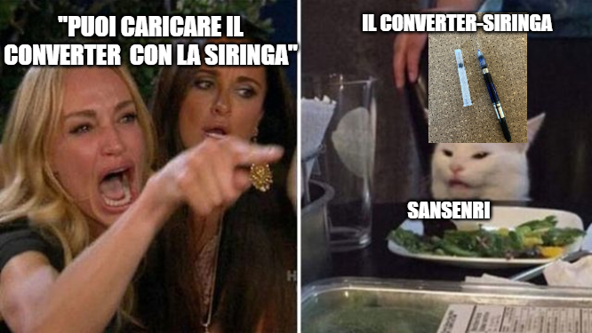 Se invece devi caricare il converter... so che l'ho già mostrato più volte, ma il converter-siringa, in questi casi è utile (e spesso non costa nulla se hai una siringa ipodermica per casa).