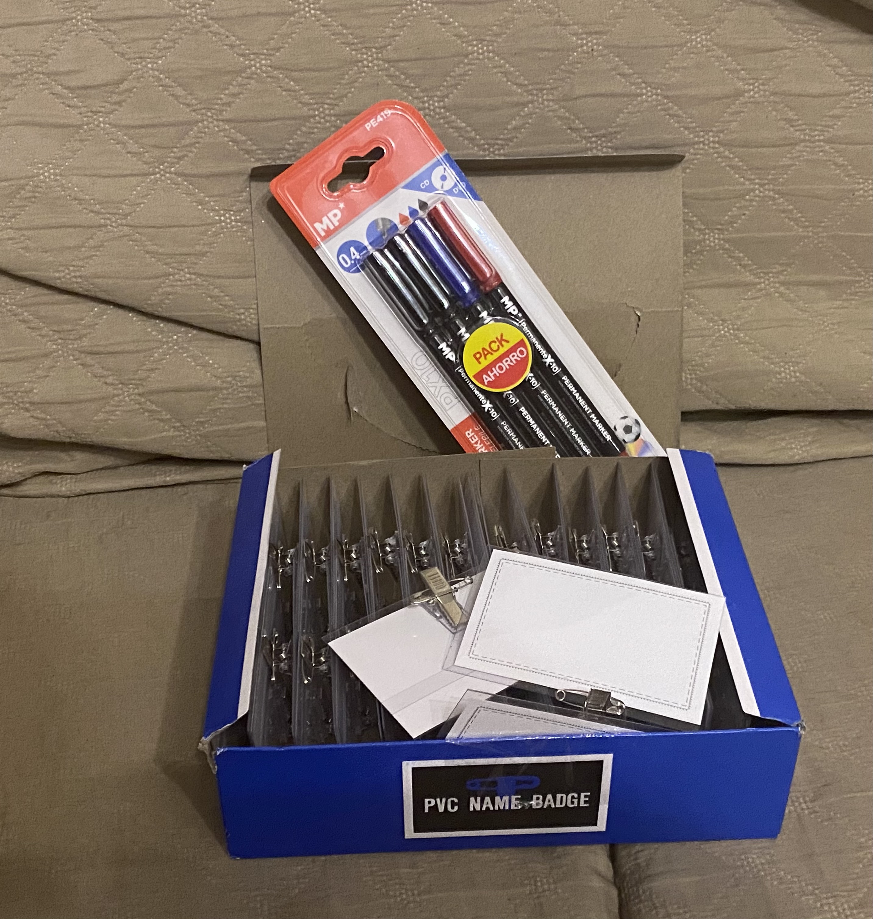 Per i perfezionisti potete portare anche direttamente un cartoncino stampato col vostro nome da inserire nel badge (circa 5 x 9 cm)