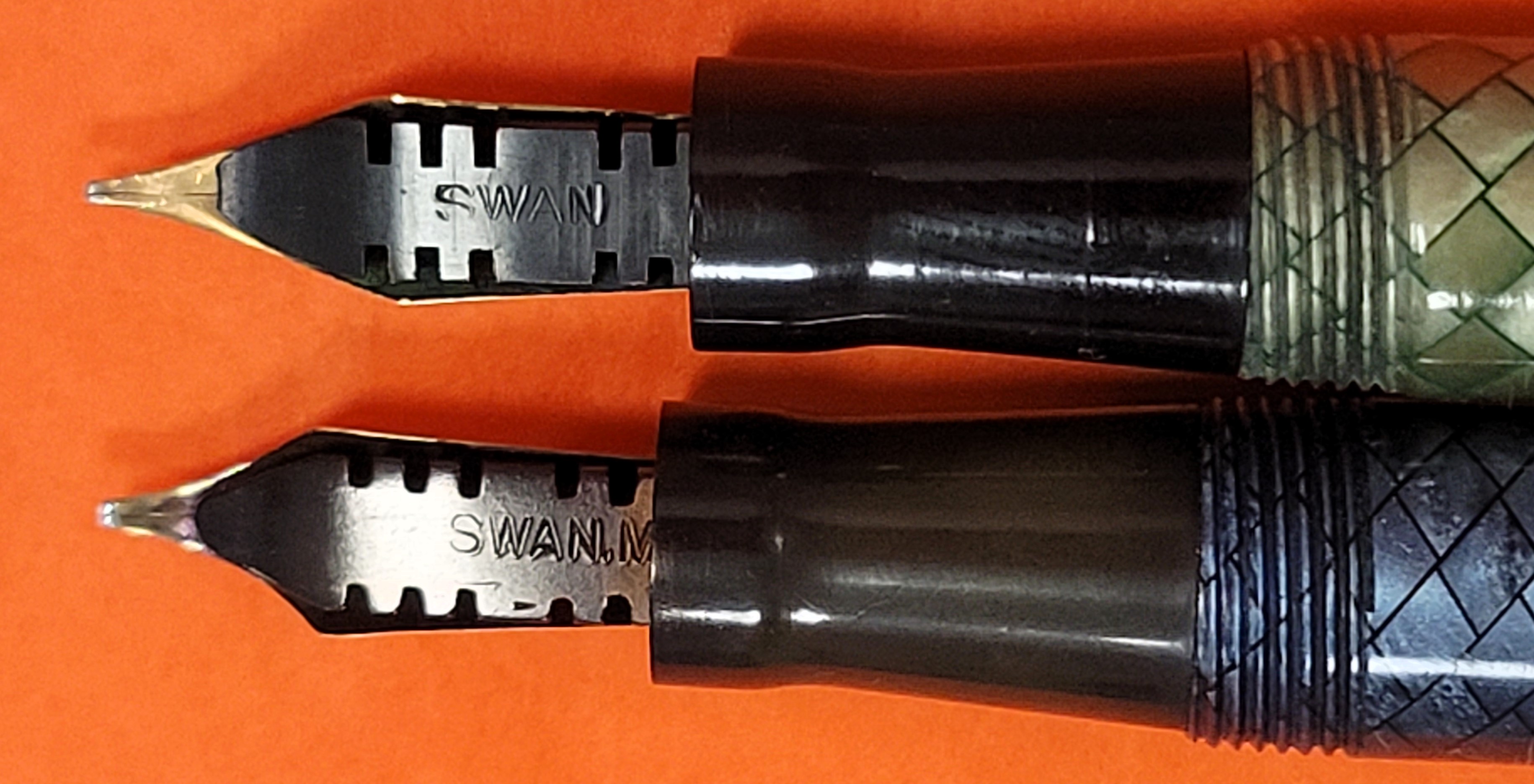 Intorno al 1923, l'azienda iniziò la produzione della sua linea di penne "Eternal", caratterizzate dal caricamento a levetta e nel 1927 la produzione venne convertita alla celluloide. Erano penne molto solide e ben fatte, con diversi colori disponibili molto attraenti come verde, blu, il color corallo ma anche il color lavanda, mandarino, il blu lapislazzuli. Sia le vivaci colorazioni della celluloide che l'uso di decorazioni come verette ed anellini resero le stilografiche Swan fra le più belle ed originali dell'epoca.