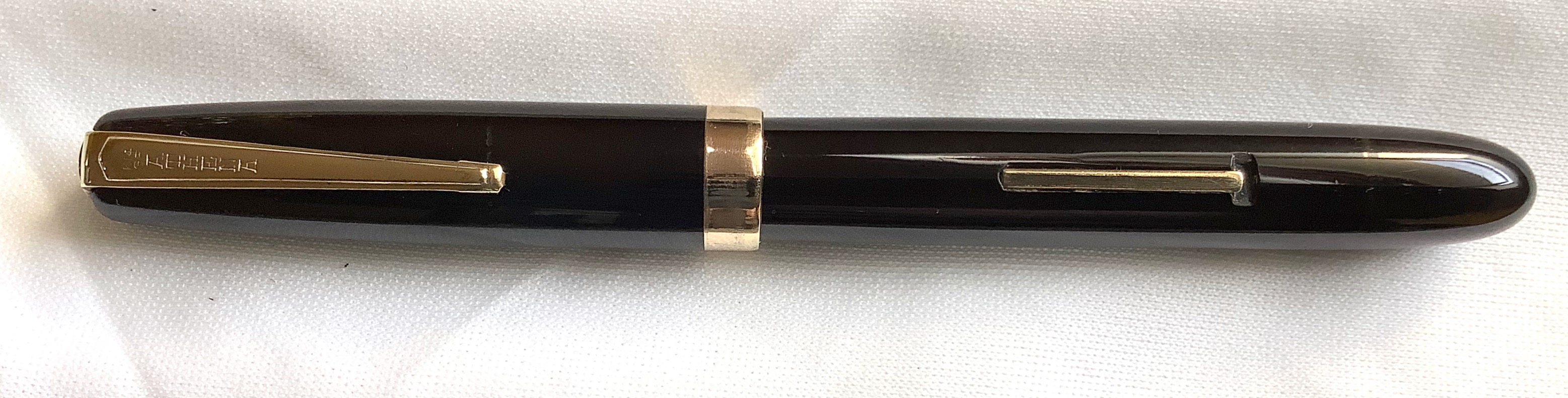 La stilografica presentata è degli anni cinquanta , evidenziato sia dal tipo di fermaglio che dal piccolo gioiello a bottone che lo tiene fisso al cappuccio, ed anche dal marchio JIS introdotto nel 1953.