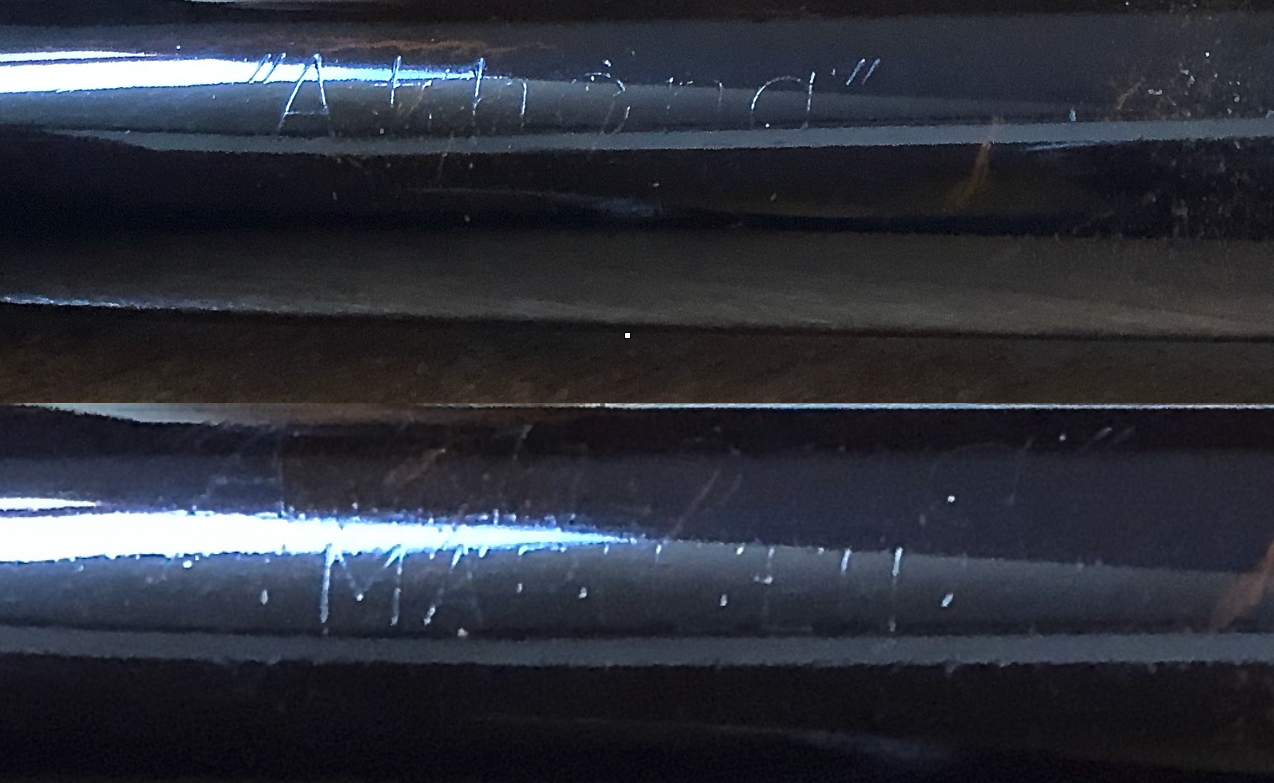 Il pennino presentava una rebbio storto in prossimità della punta in lega , con il grande rischio di far saltare via quest'ultima , nel tentativo di raddrizzare il pennino (motivo per il quale la penna è stata poco "considerata" e con costo molto ragionevole).
