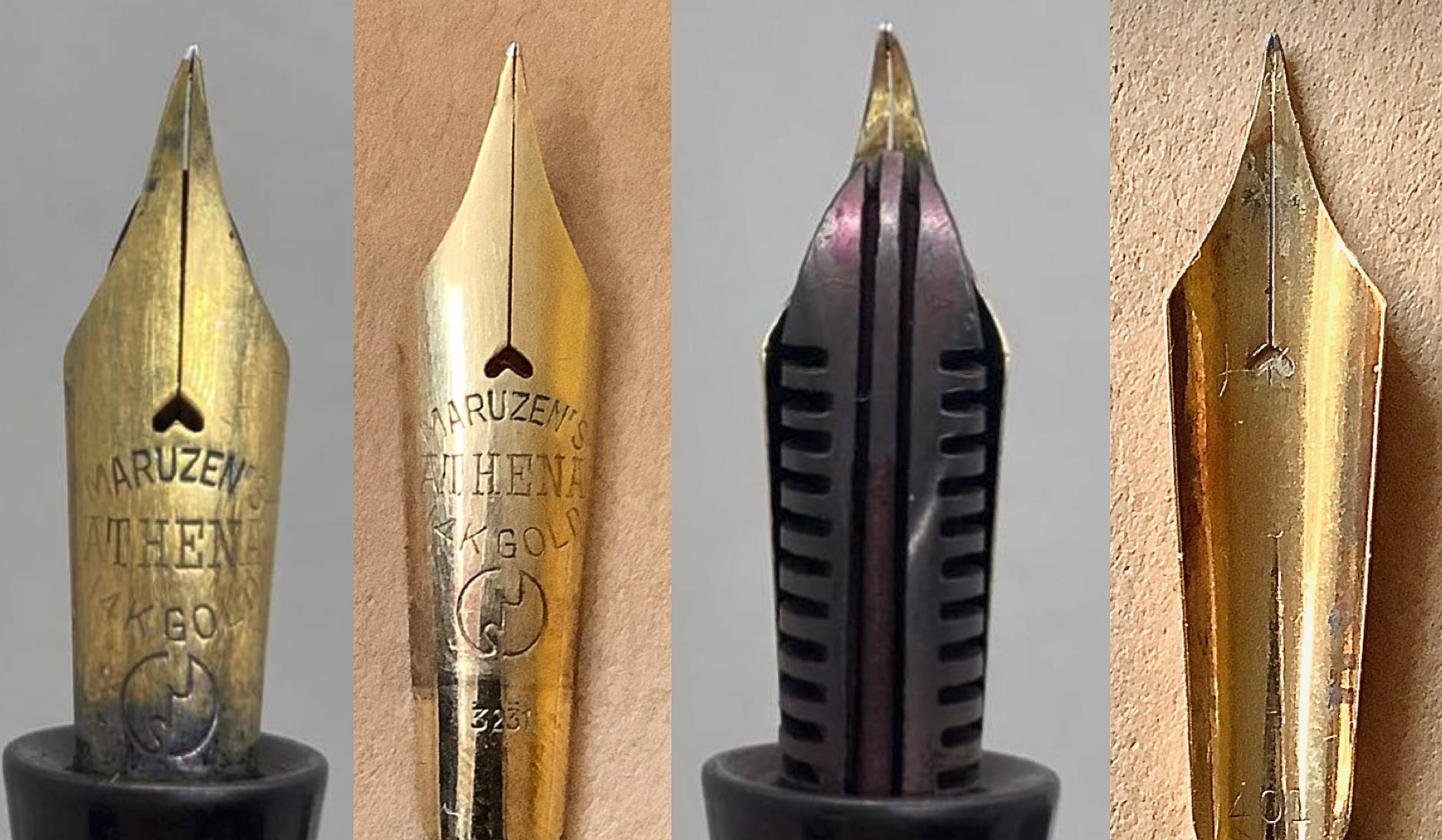 Della metà degli anni trenta sono le Athena “Rinascimento”, in ebanite liscia solitamente rivestita di uno strato di lacca urushi , caricamento a levetta o a contagocce.